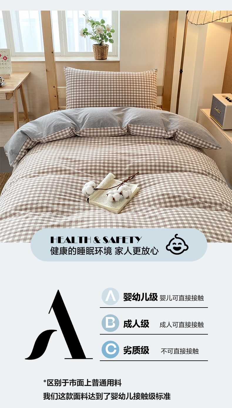 商品名称:鸣升家纺 2025新款全棉纯棉色织水洗棉学生三件套 米小格