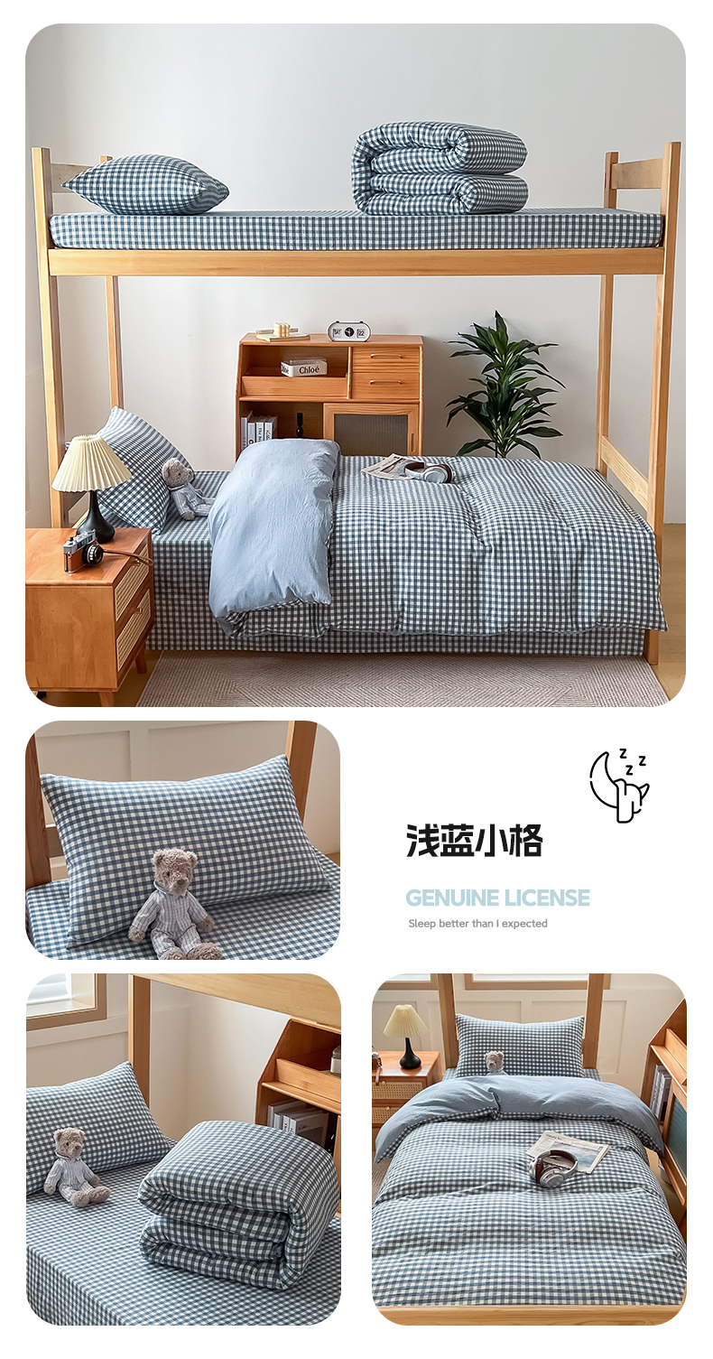 (总)鸣升家纺 2025新款全棉纯棉色织水洗棉学生宿舍床三件套上下铺三件套六件套,柏拉图兰,粉小格,格林粉,灰条,绿大格,米小格,米粽丈青格,莫妮卡粉,莫妮卡兰,浅蓝小格,青春-海兰,希尔威亚兰,新灰格,星空粉,星空绿,英伦格,中灰条