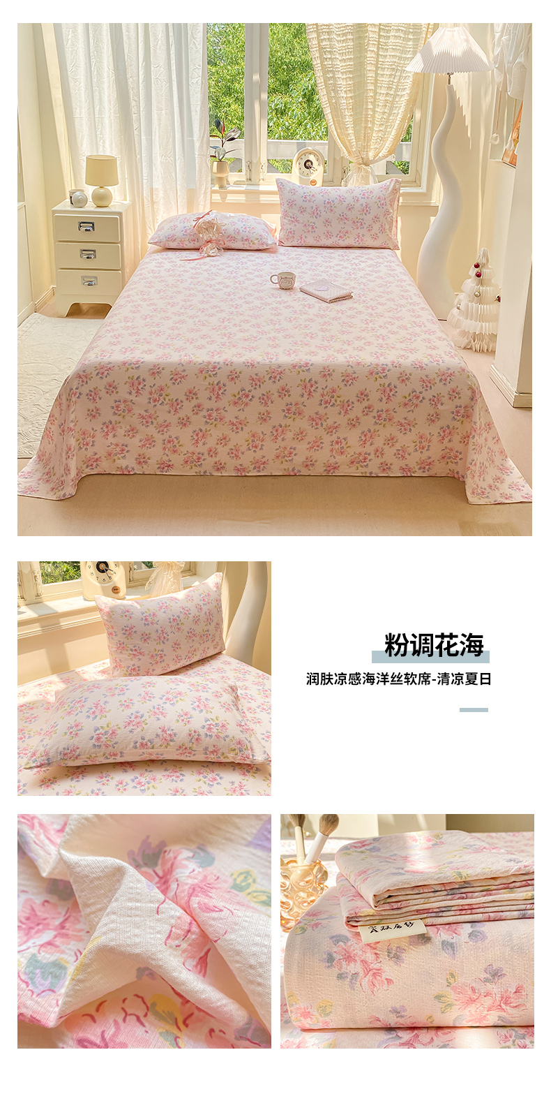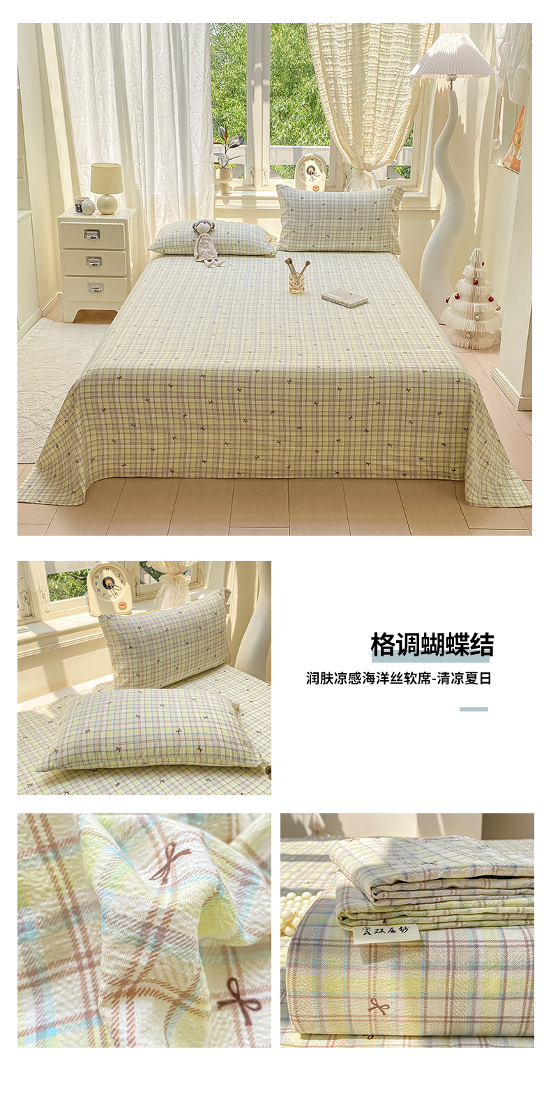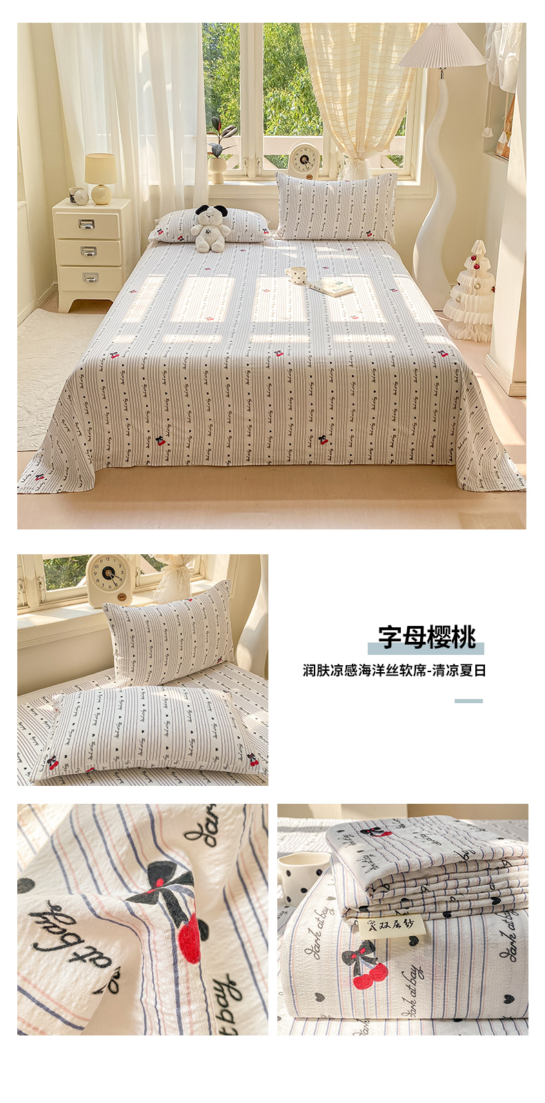 商品名称:(总)眠势力 2025新款云感双层纱床单三件套ins奶油风学生宿舍床单四季通用