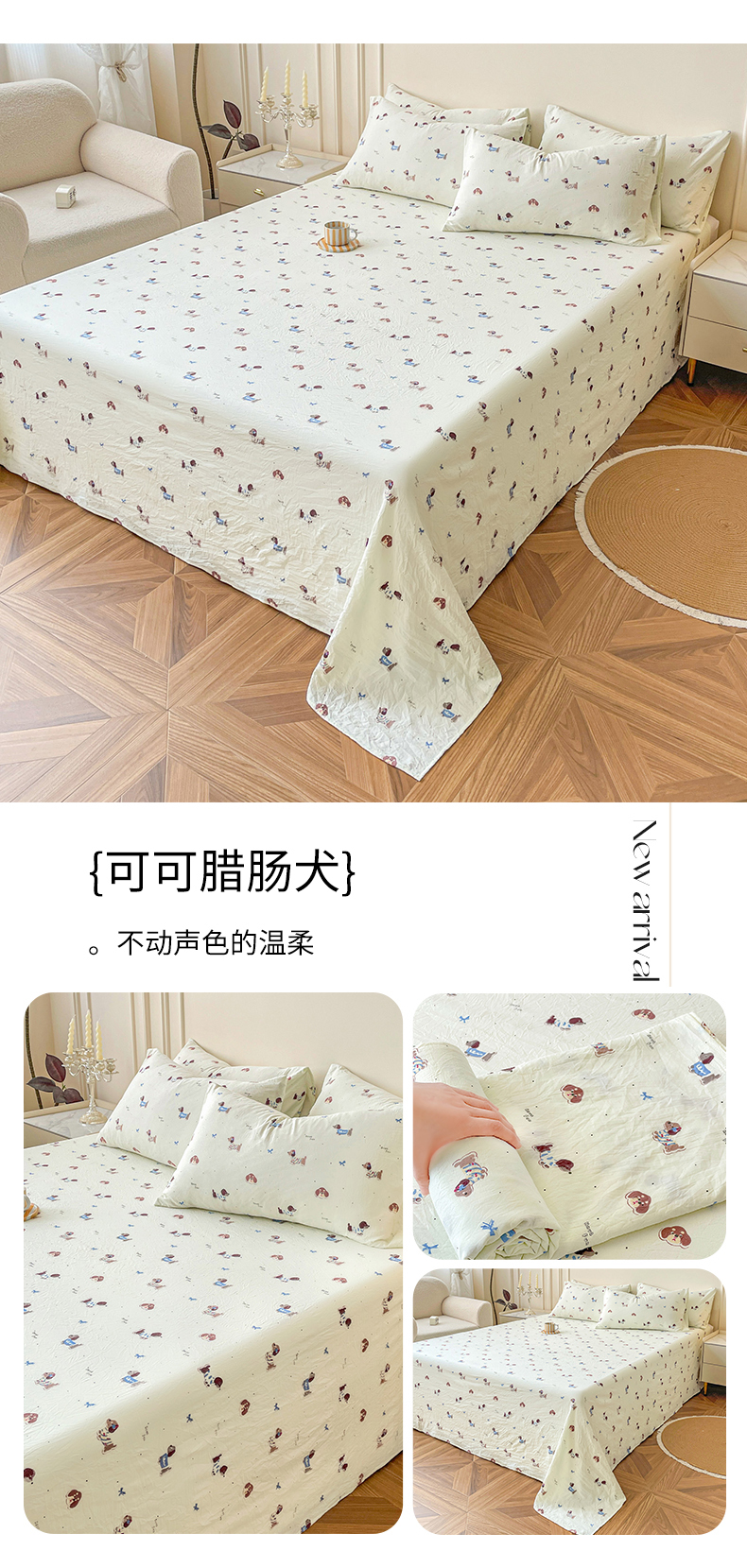 纽缦家纺 2025新款水洗双层纱床单 可可腊肠犬