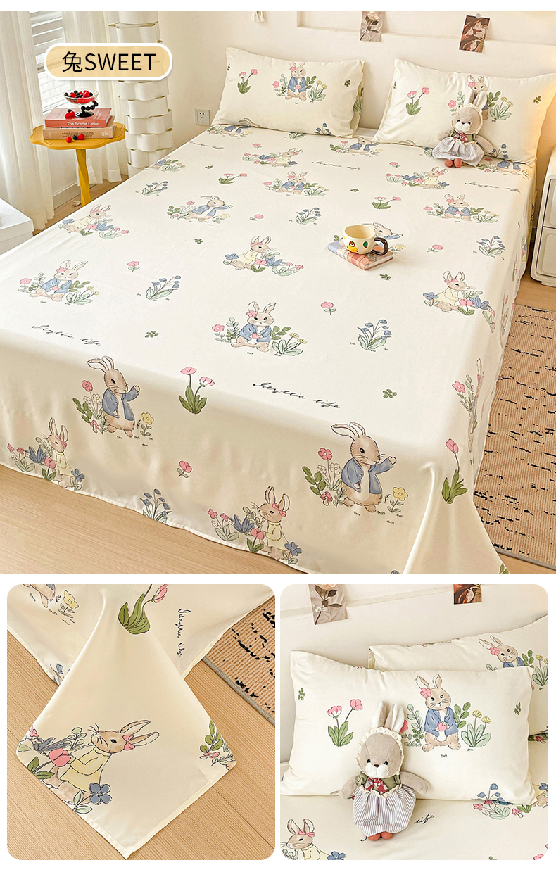 商品名称:纽缦家纺 2025新款水洗双层纱床单 兔sweet