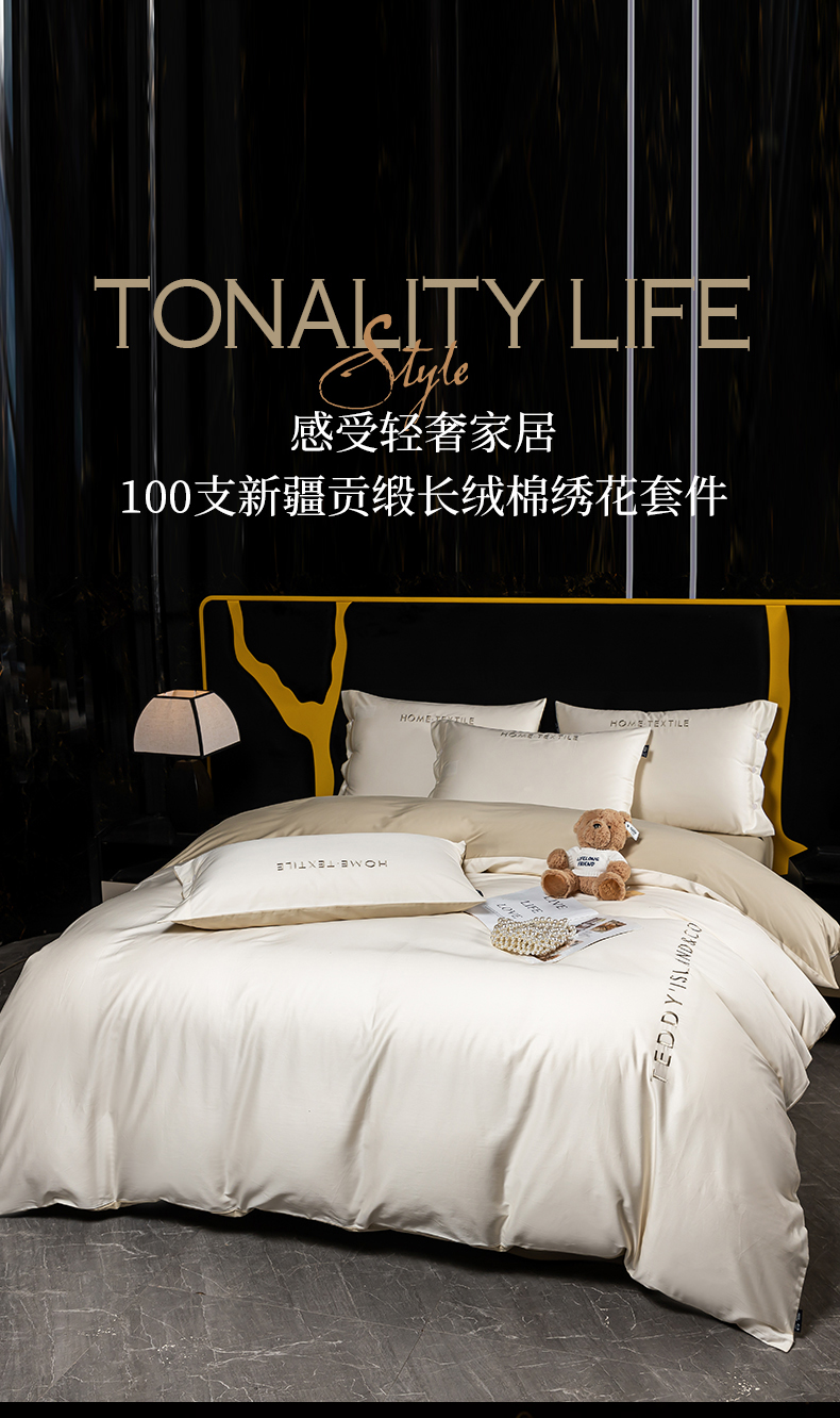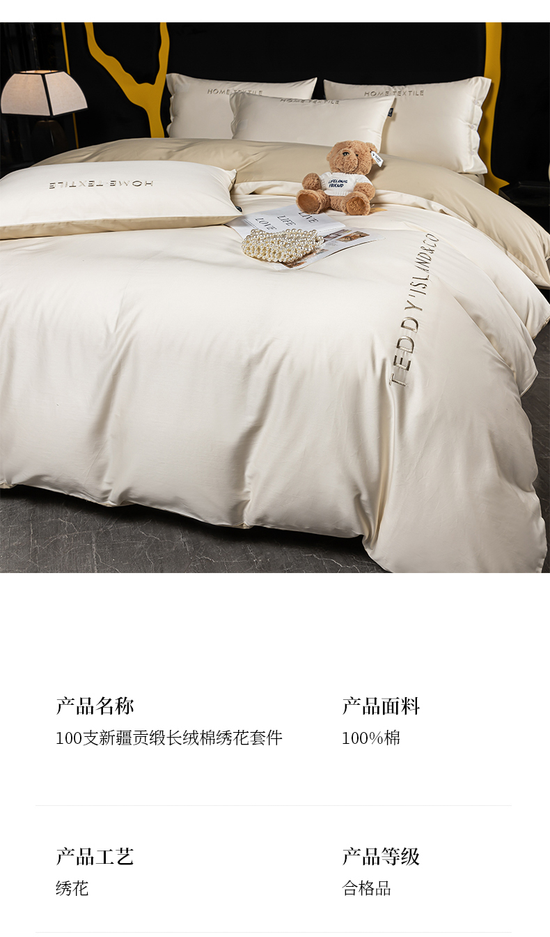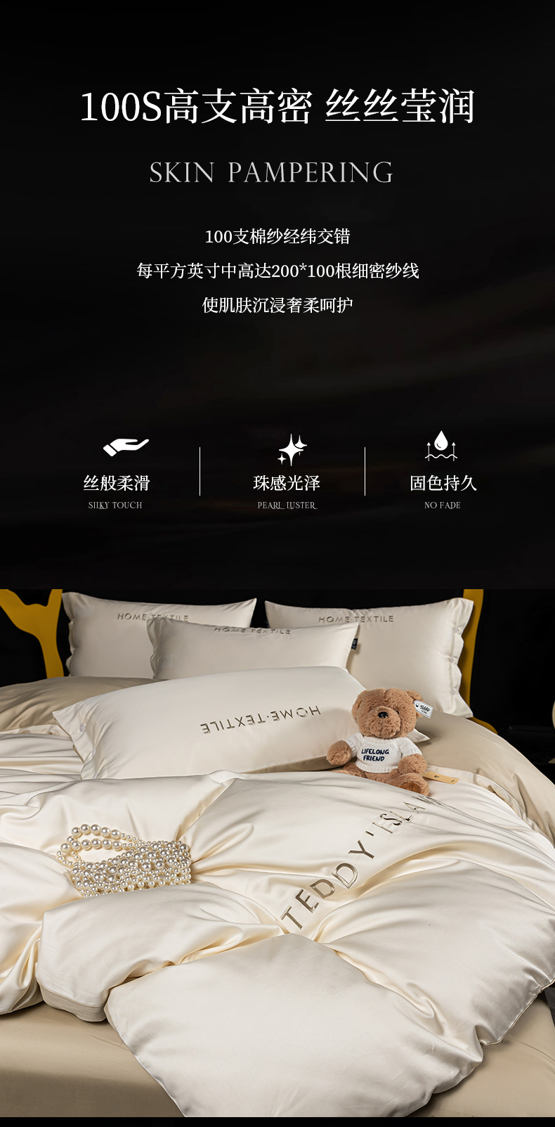 当前位置: 91家纺网 > 商品网购 > 床品套件 > 四件套 > 全棉活性四件套 > 泰迪爱兰Teddy 2025新款100支(50支)全棉贡缎字母绣花四件套 象牙白+柔和绿