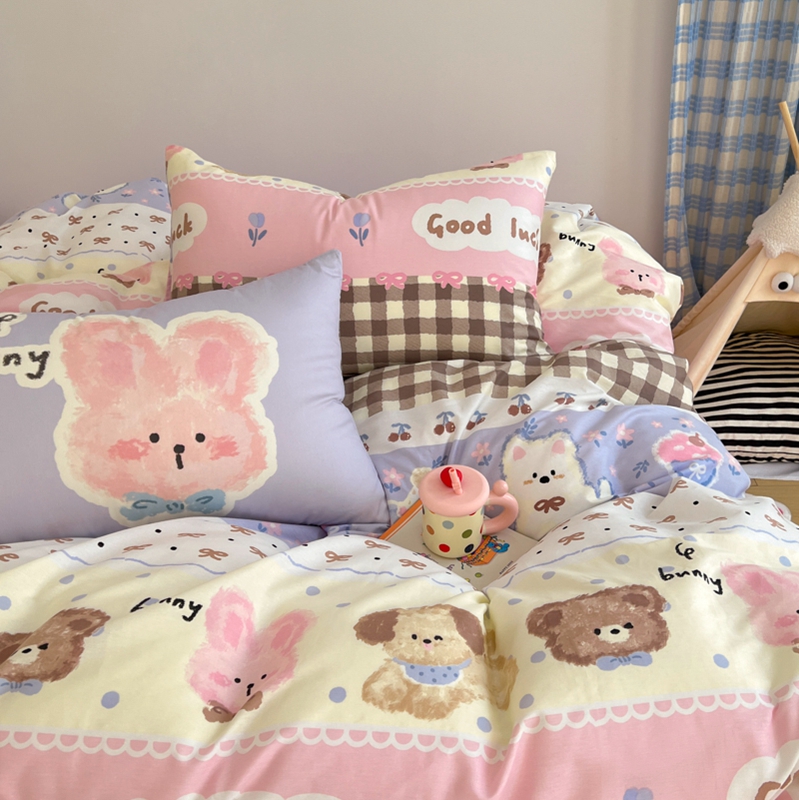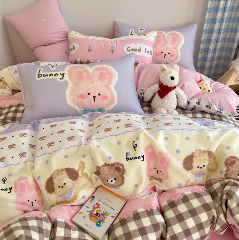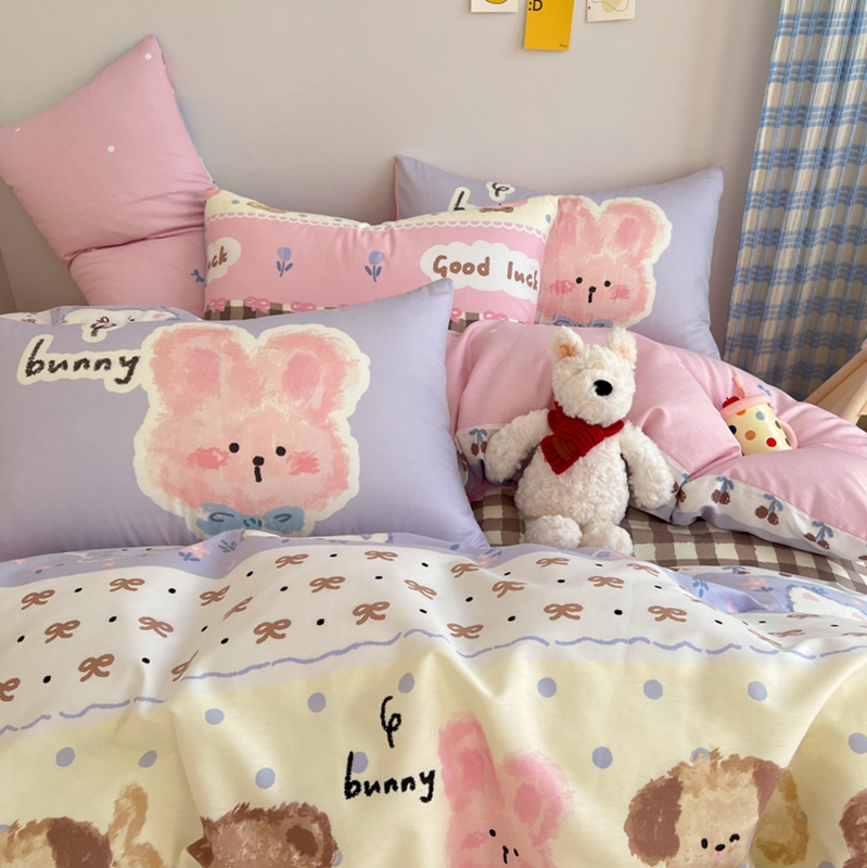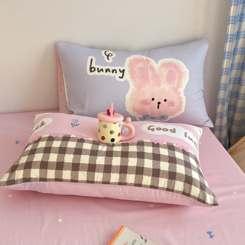 桃喜 2025新款6月开学季全棉混搭枕套13070学生三件套四件套 治愈小兔