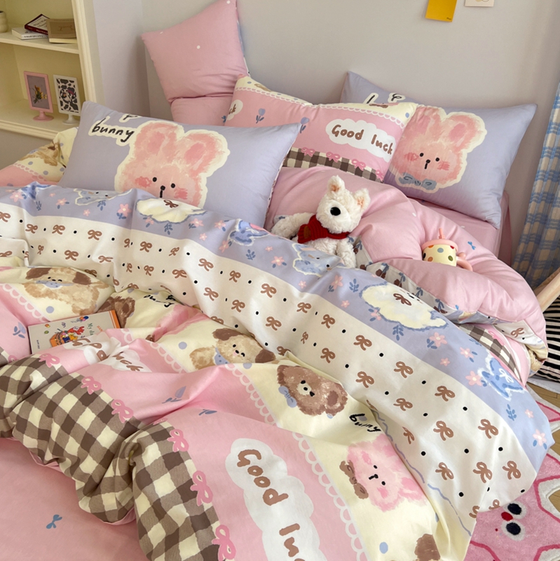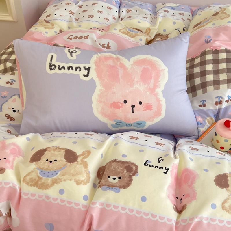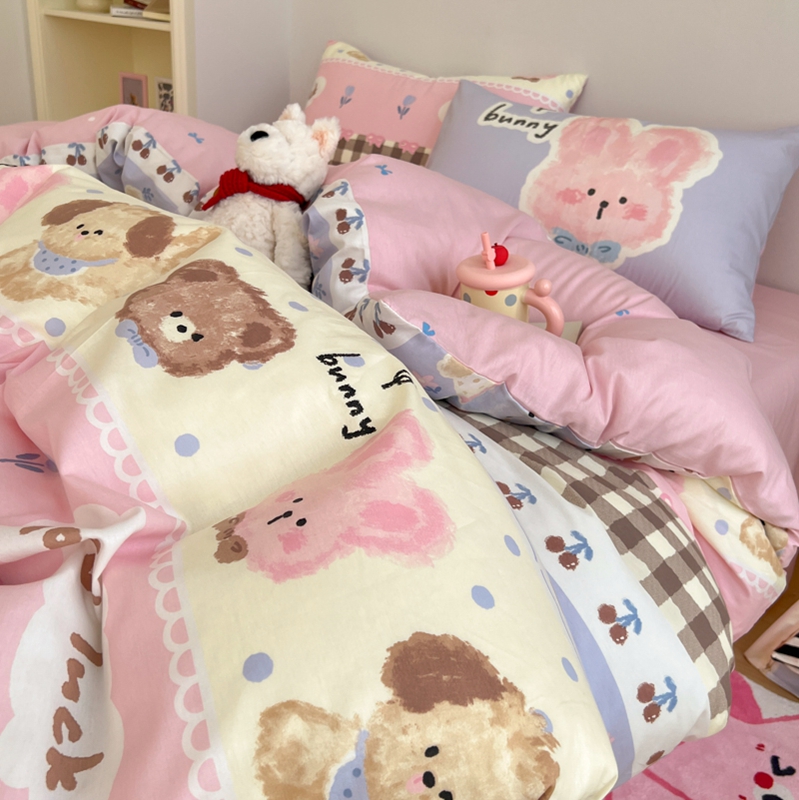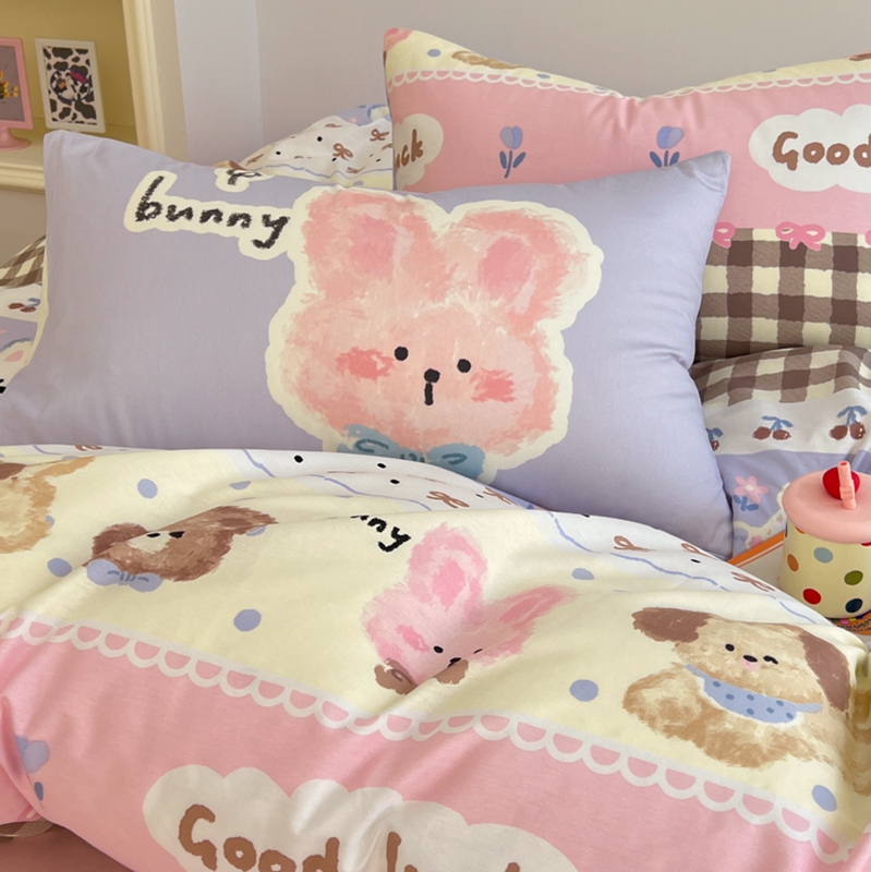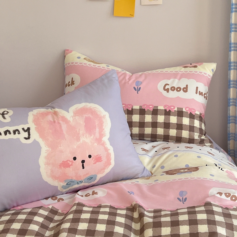 商品名称:桃喜 2025新款6月开学季全棉混搭枕套13070学生三件套四件套 治愈小兔