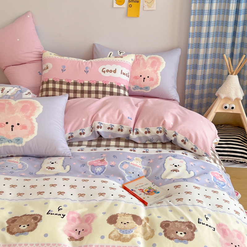 (总)桃喜 2026新款全棉混搭卡通印花学生三件套四件套,费尔岛蝴蝶结小狗,费尔岛小熊,可爱动物团,可爱小兔子,星星猫咪