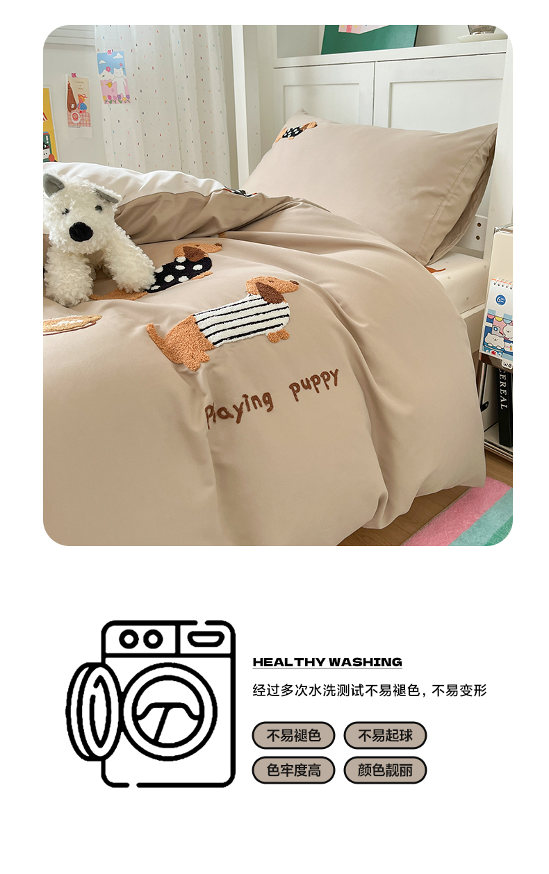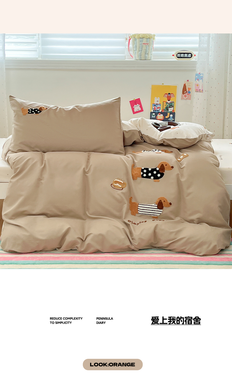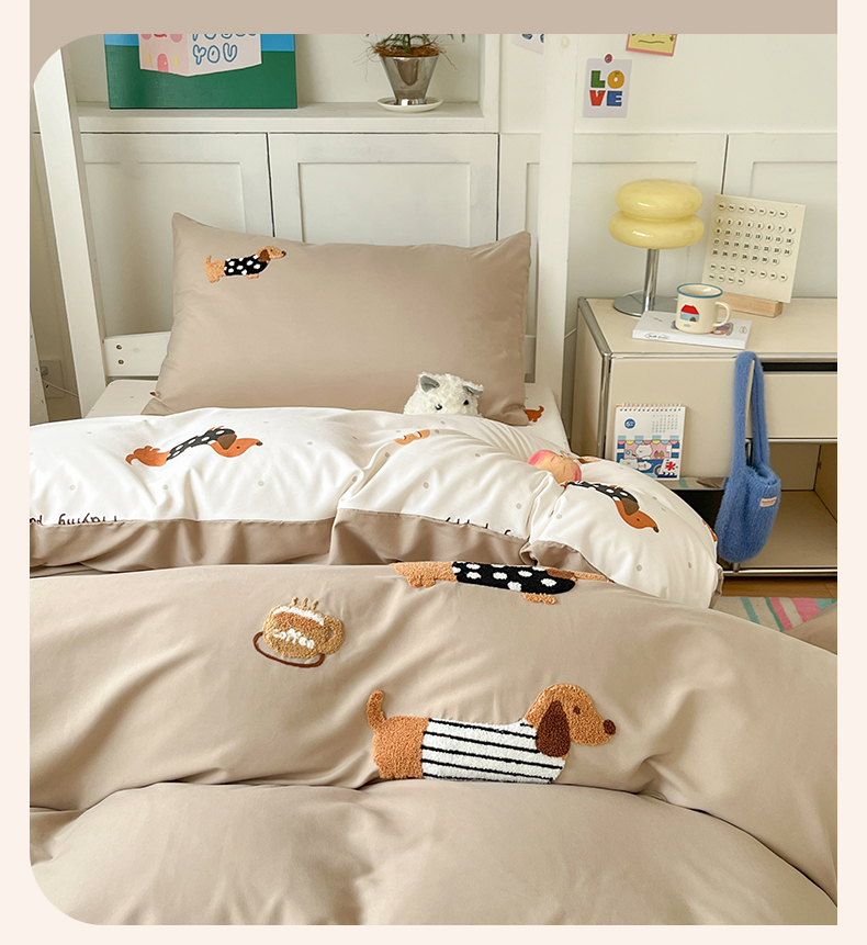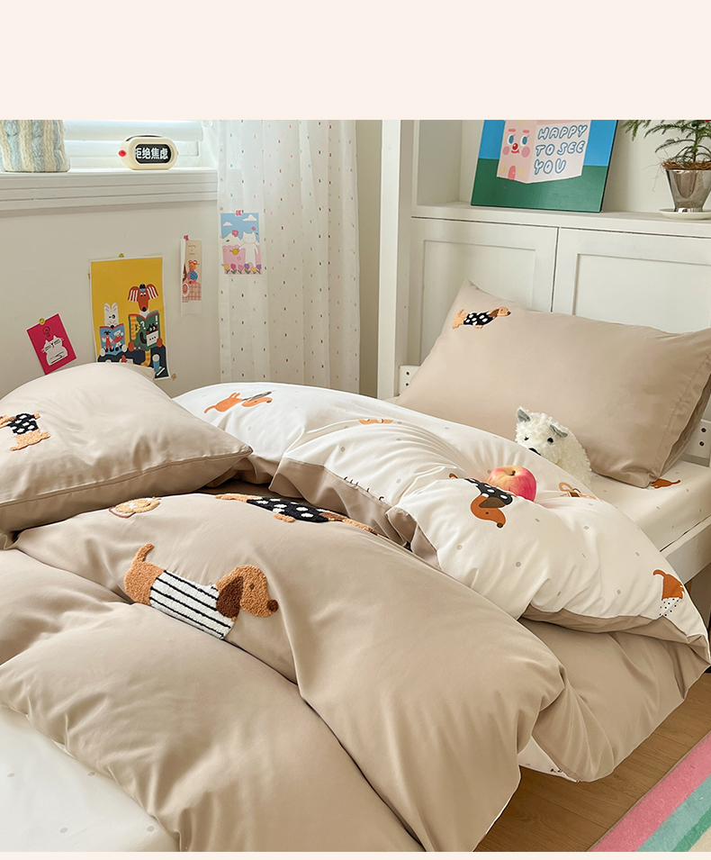 当前位置: 91家纺网 > 商品网购 > 床品套件 > 三件套 > 如一 2025新款A类卡通毛巾绣水洗云朵棉学生宿舍床三件套 腊肠犬