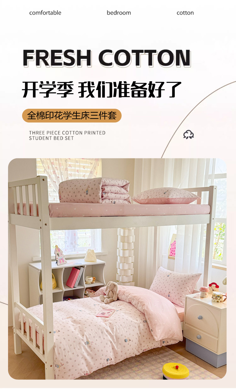 当前位置: 91家纺网 > 商品网购 > 床品套件 > 三件套 > 慕尚家纺 2025新款13070全棉学生季全棉学生床三件套 粉格花