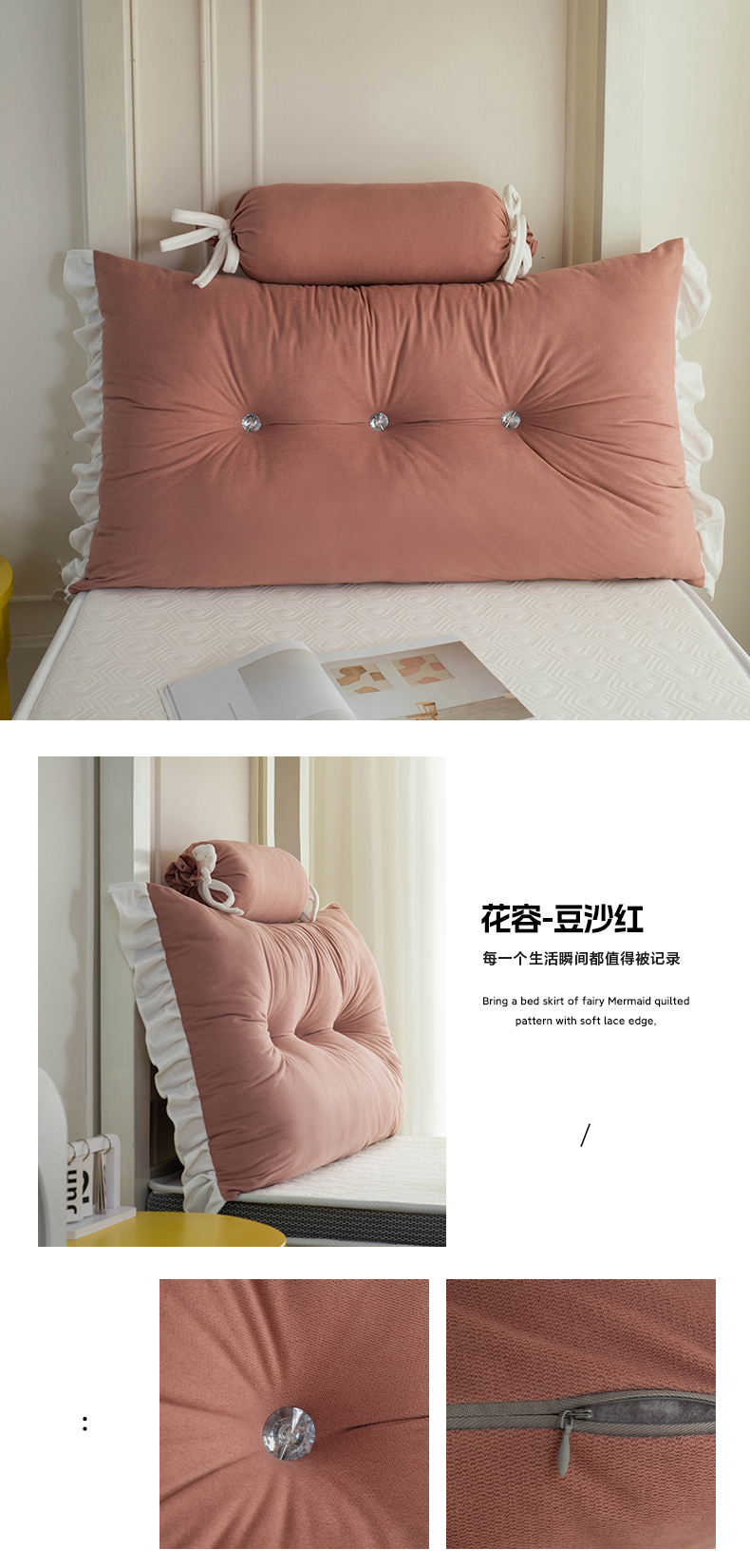 (总)一兰家纺 2025新款学生季床头靠垫床上护栏公主风靠枕床上抱枕护腰靠--花容系列,花容-淡雅米,花容-豆沙红,花容-蒙蒙灰,花容-水漾蓝,花容-嫩嫩橘