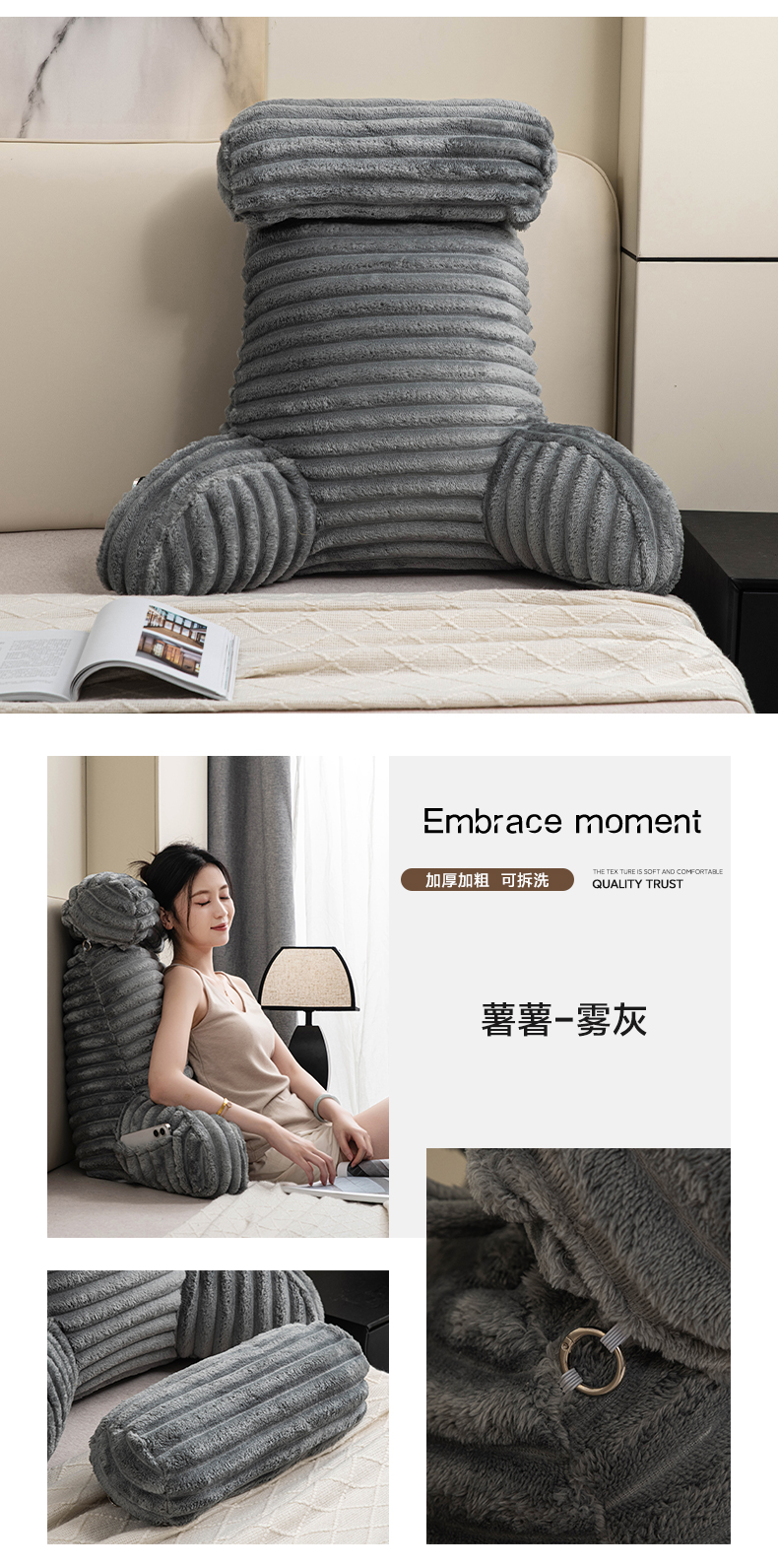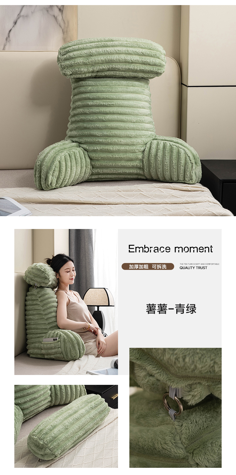 (总)一兰家纺 2025新款单人靠垫加厚薯条绒床头靠背护腰靠垫可拆洗款-薯薯系列,薯薯-蜜白,薯薯-青绿,薯薯-雾灰,薯薯-嫣粉,薯薯-曰蓝
