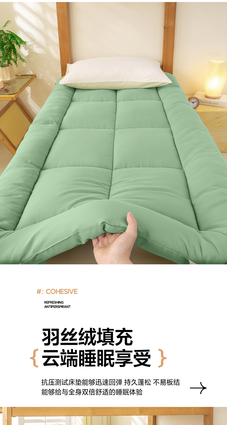 商品名称:憨豆家纺 2026新款酒店羽丝绒床垫学生宿舍单人床褥超厚榻榻米垫子不塌陷被褥可折叠(含买家秀) 绿树成荫