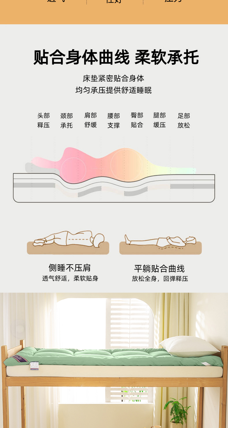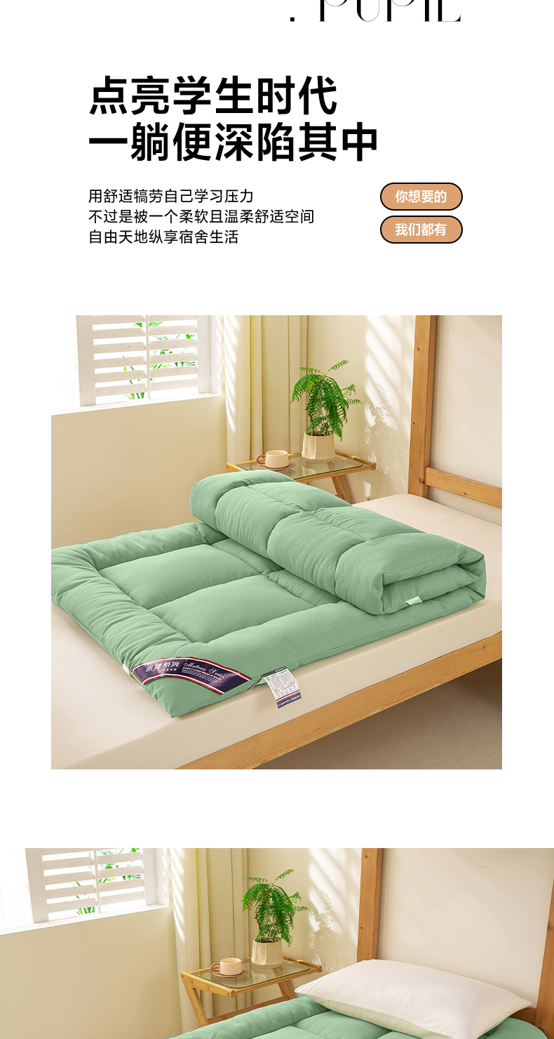 (总)憨豆家纺 2026新款酒店羽丝绒床垫学生床垫宿舍单人床褥超厚榻榻米垫子不塌陷被褥可折叠,绿树成荫,清新粉,宇宙灰,珍珠白