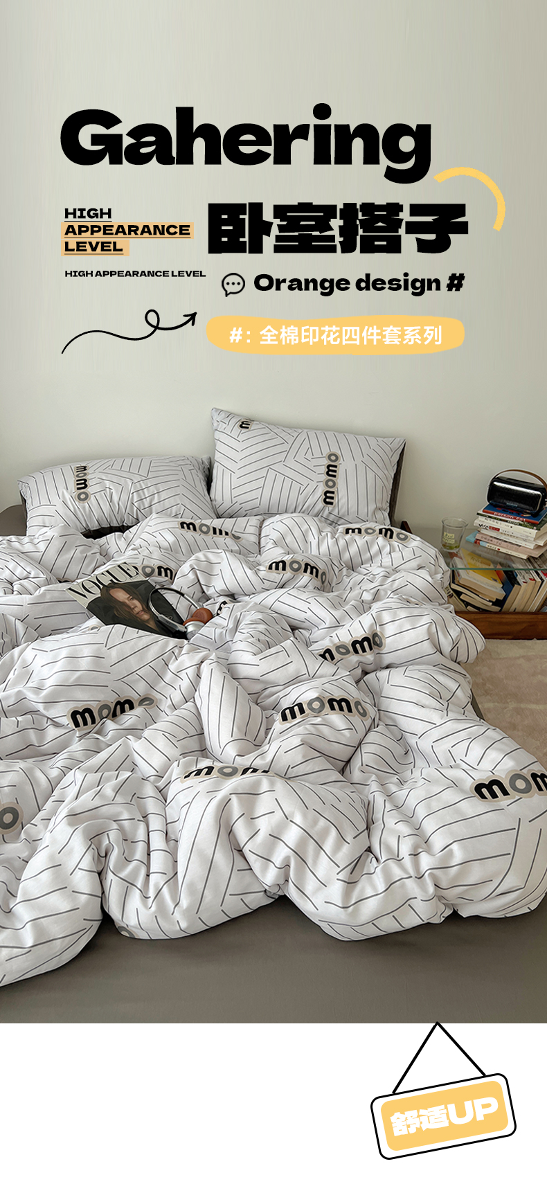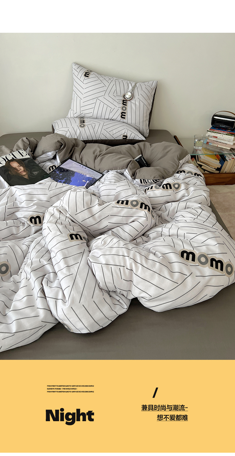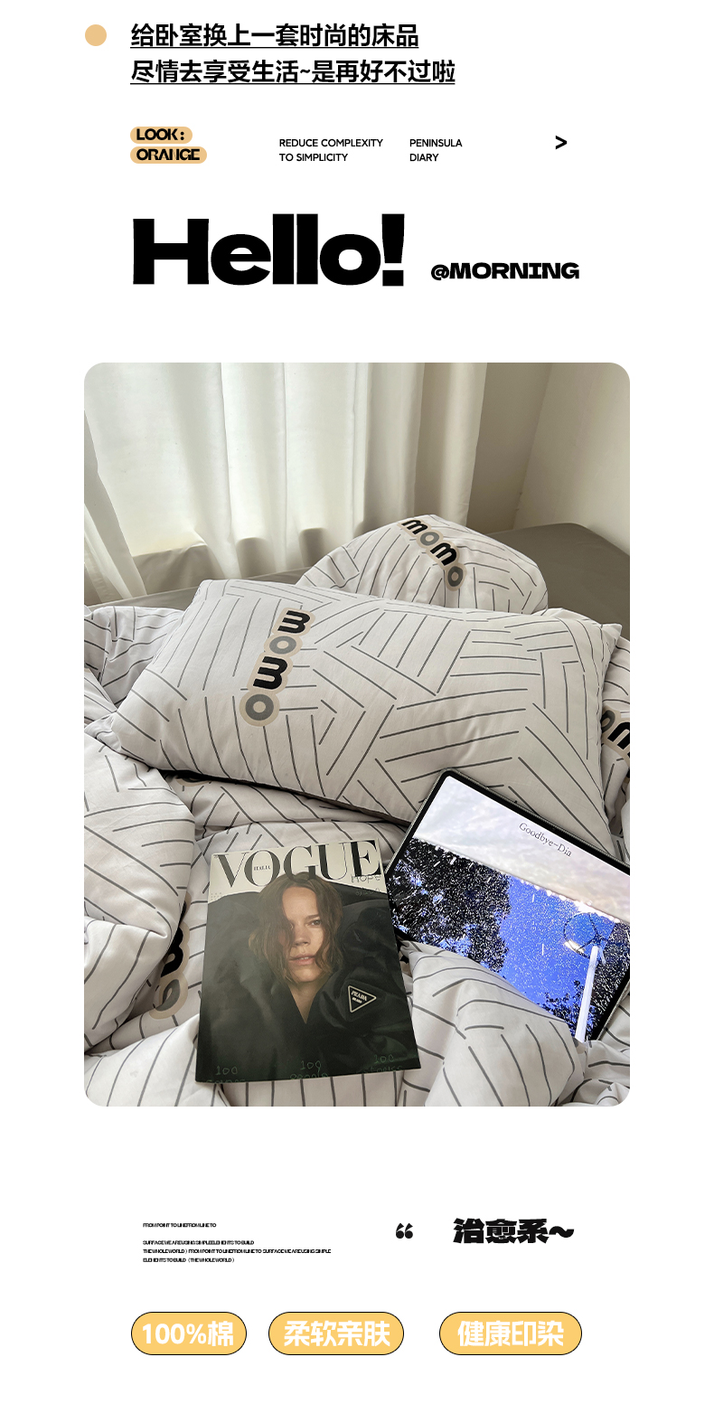 当前位置: 91家纺网 > 商品网购 > 床品套件 > 四件套 > 全棉普通四件套 > 雅居纺家纺 2025春夏新款全棉纯棉印花四件套 momo简约格