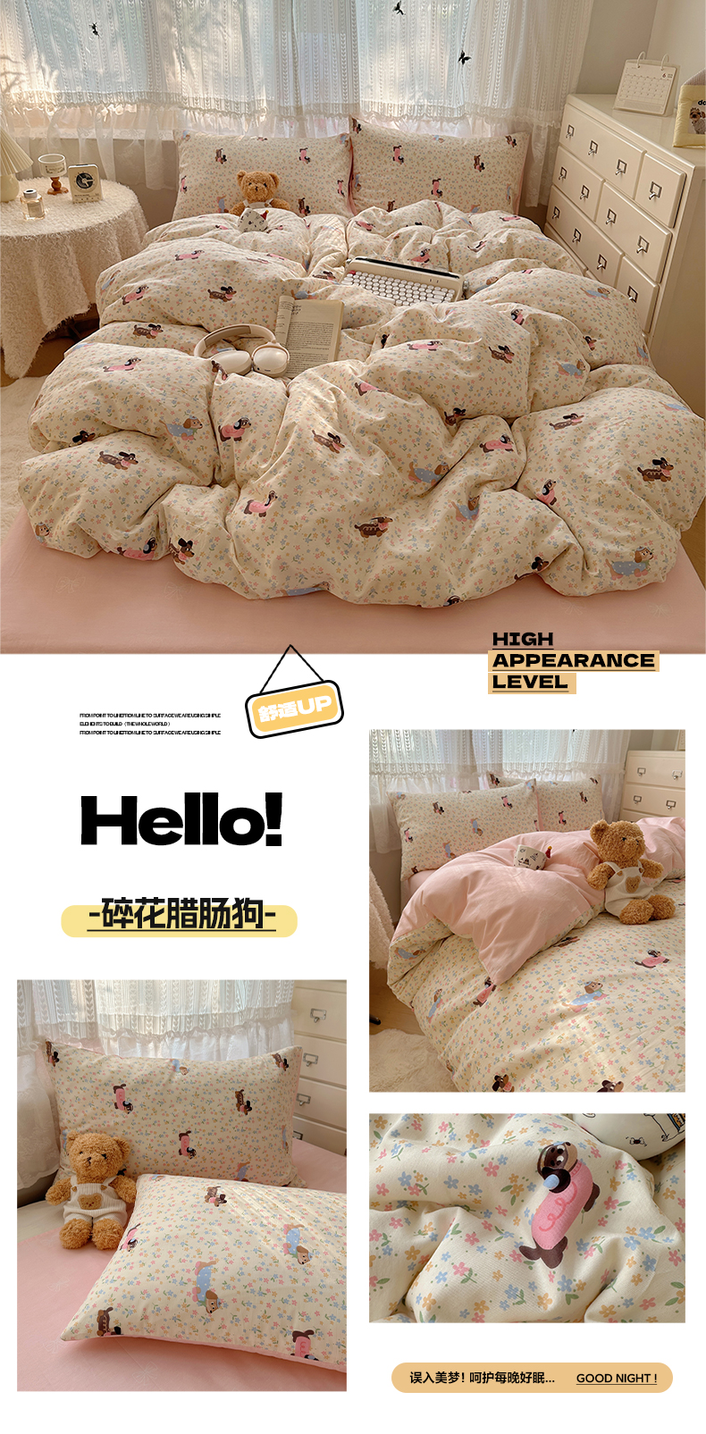 当前位置: 91家纺网 > 商品网购 > 床品套件 > 四件套 > 全棉普通四件套 > 雅居纺家纺 2025春夏新款全棉纯棉印花四件套 高西地狗狗