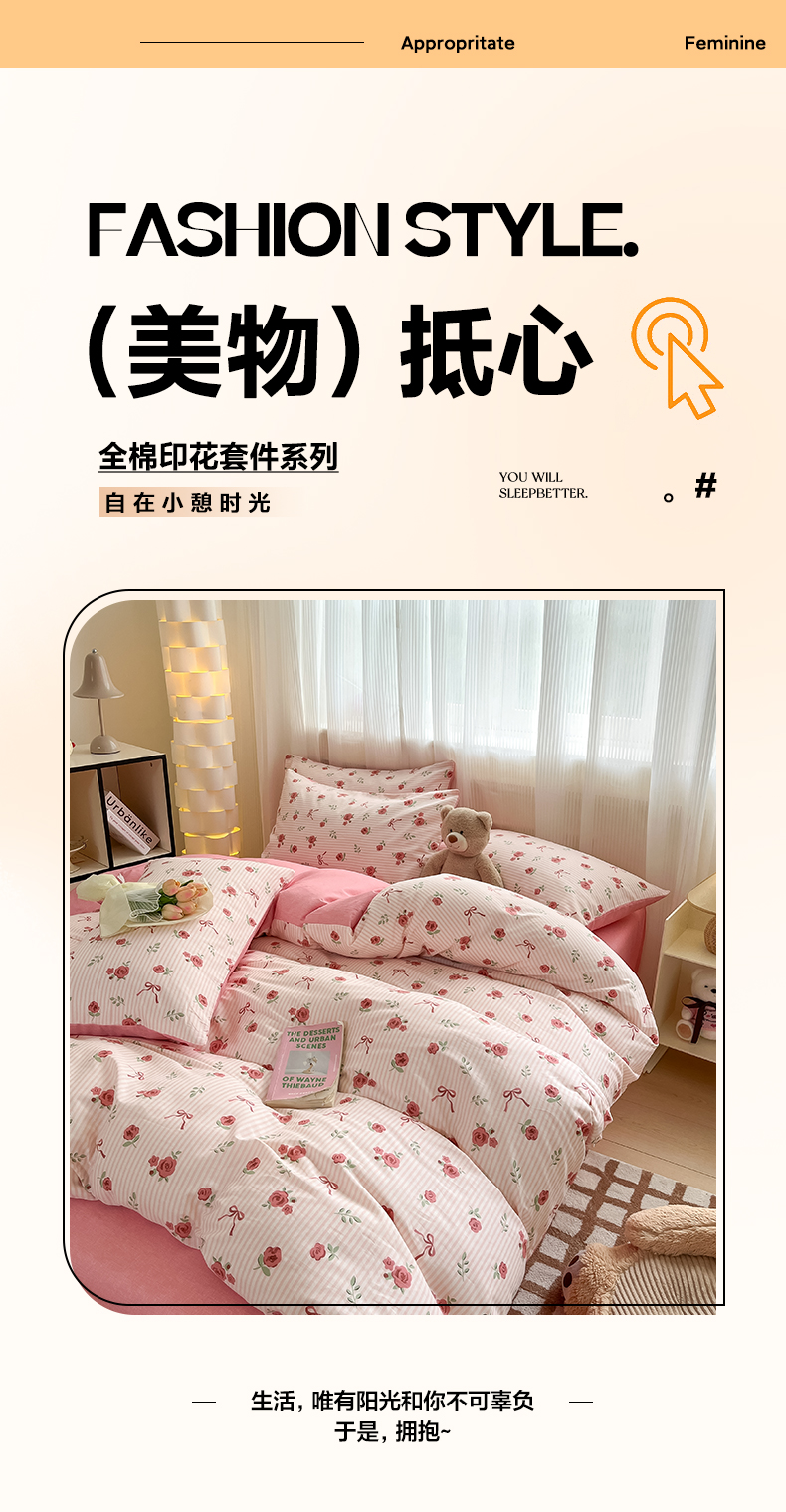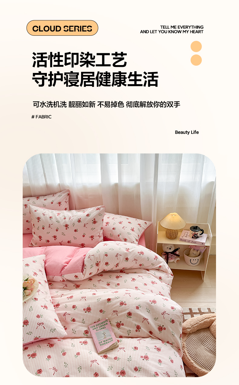 当前位置: 91家纺网 > 商品网购 > 床品套件 > 四件套 > 全棉普通四件套 > 雅居纺家纺 2025春夏新款全棉纯棉印花四件套 粉色烂漫