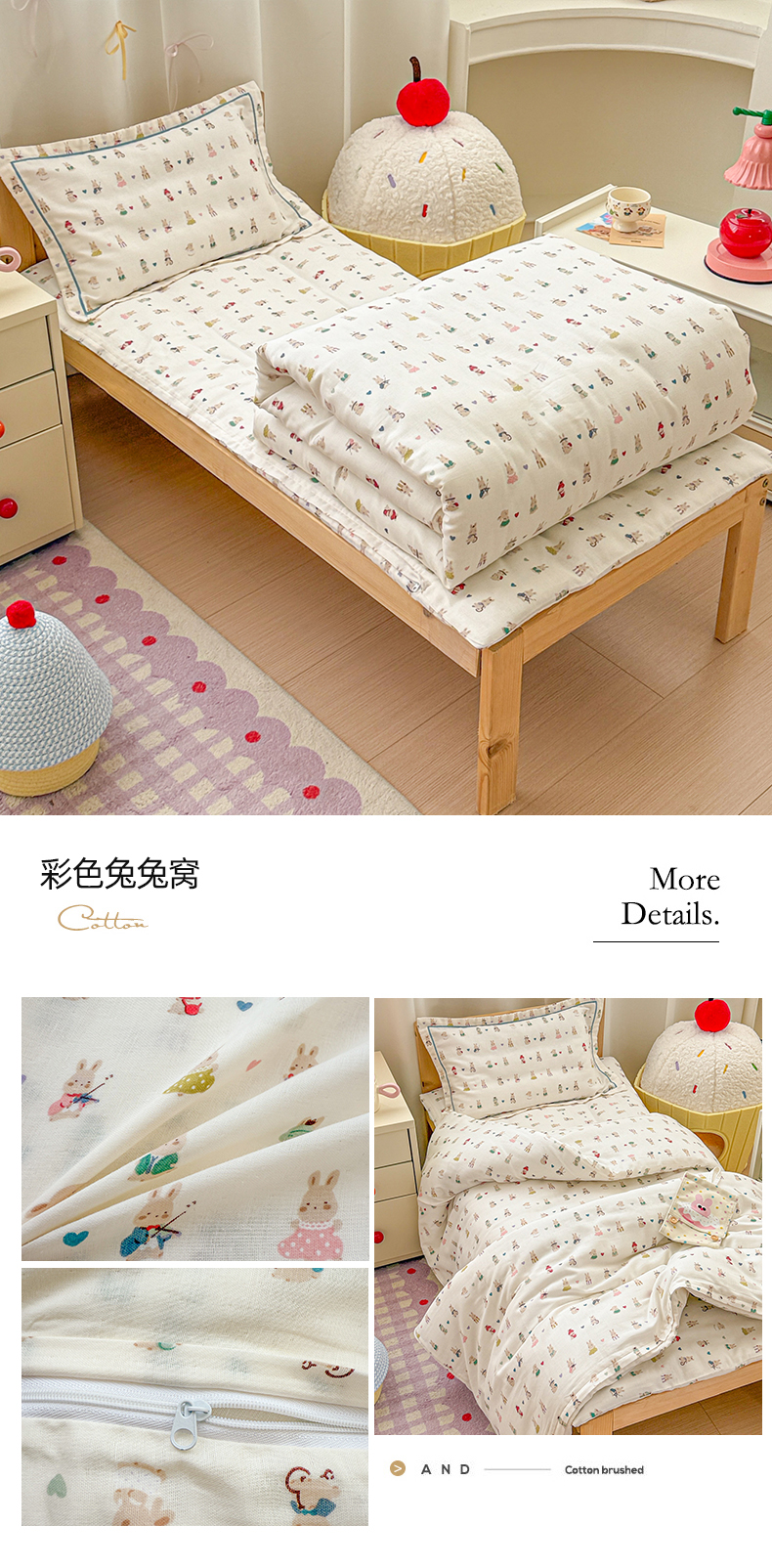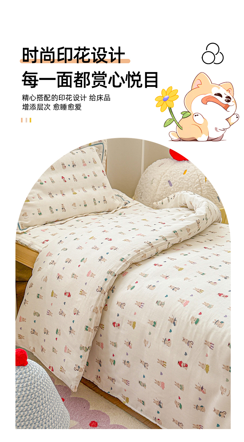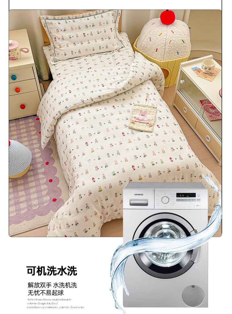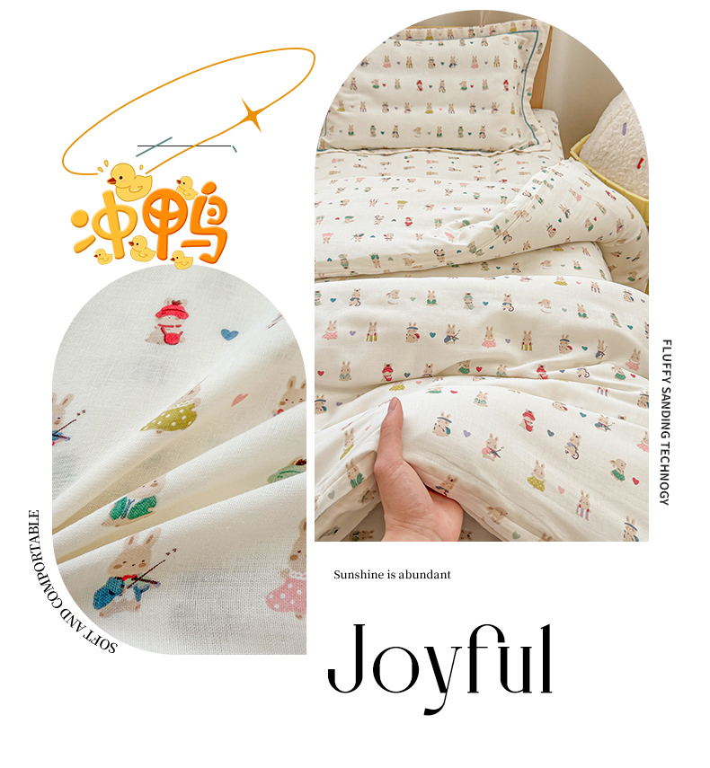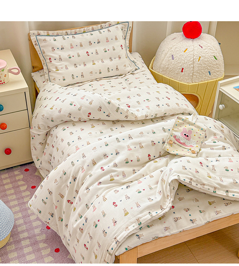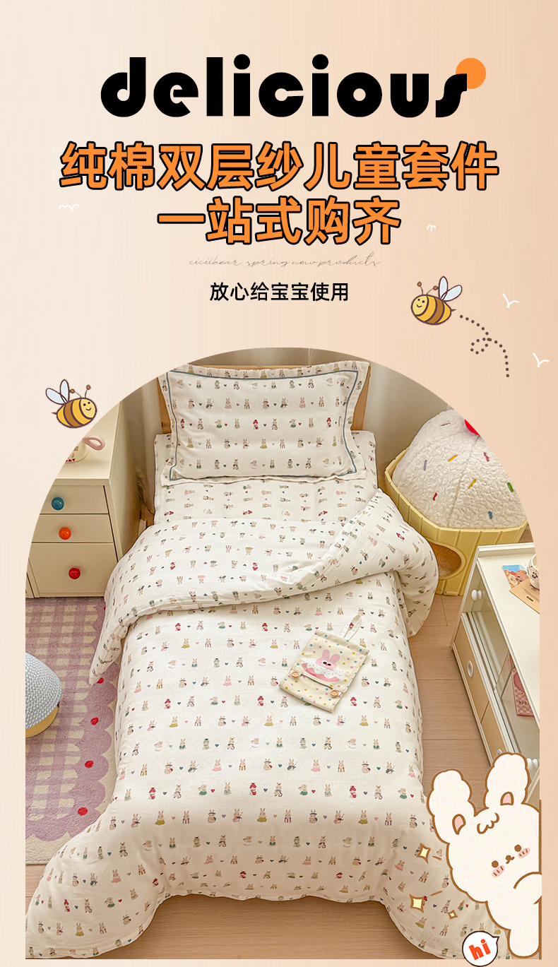 当前位置: 91家纺网 > 商品网购 > 床品套件 > 四件套 > 其它四件套 > 简宜家居(朝初家纺) 2025新款幼儿园双层纱套件 彩色兔兔窝