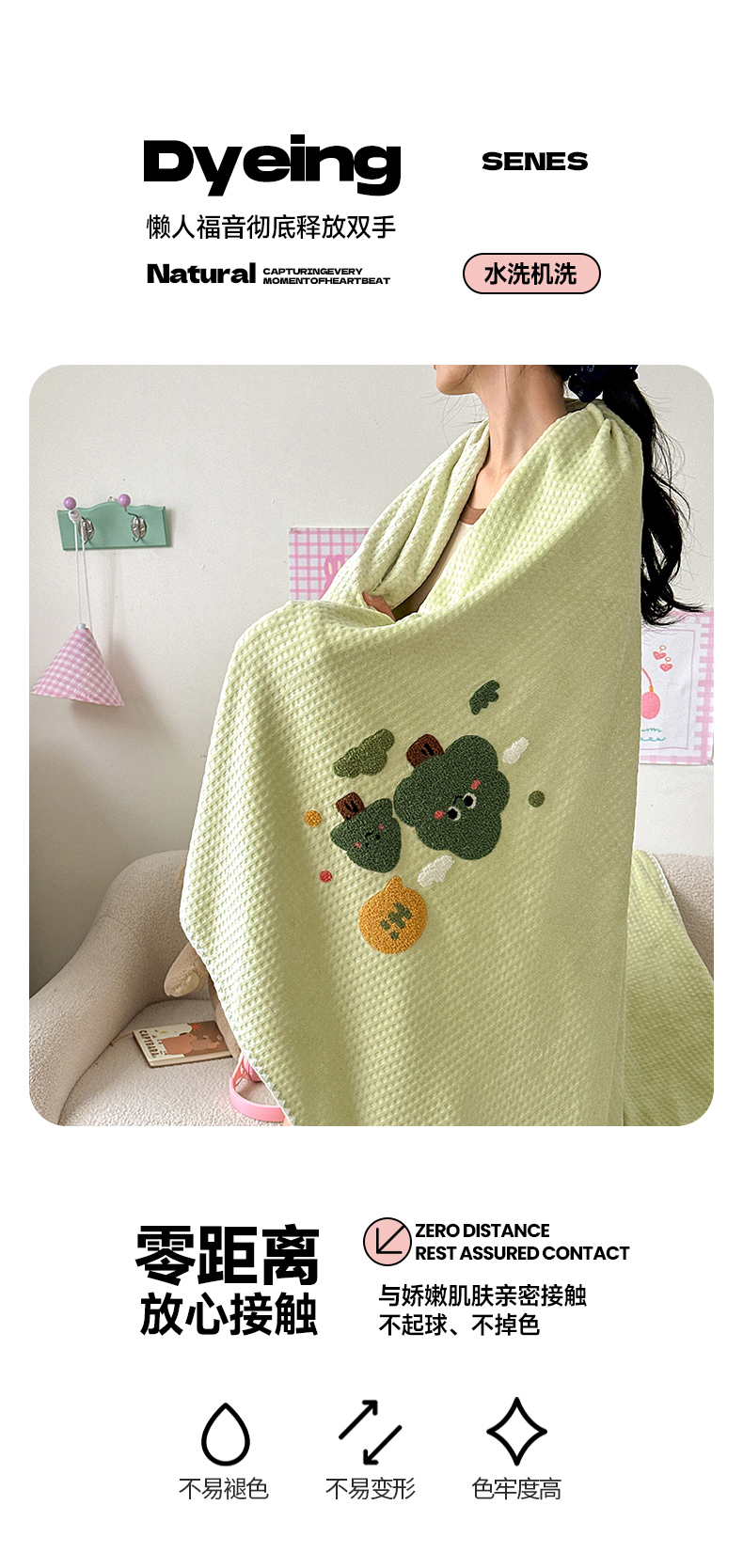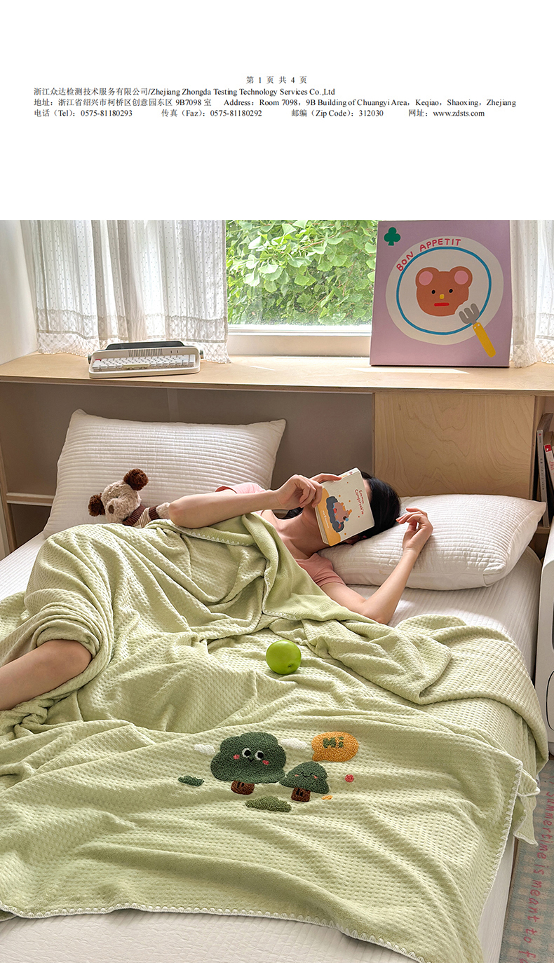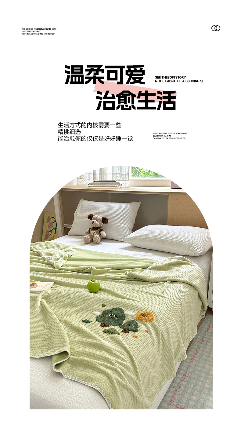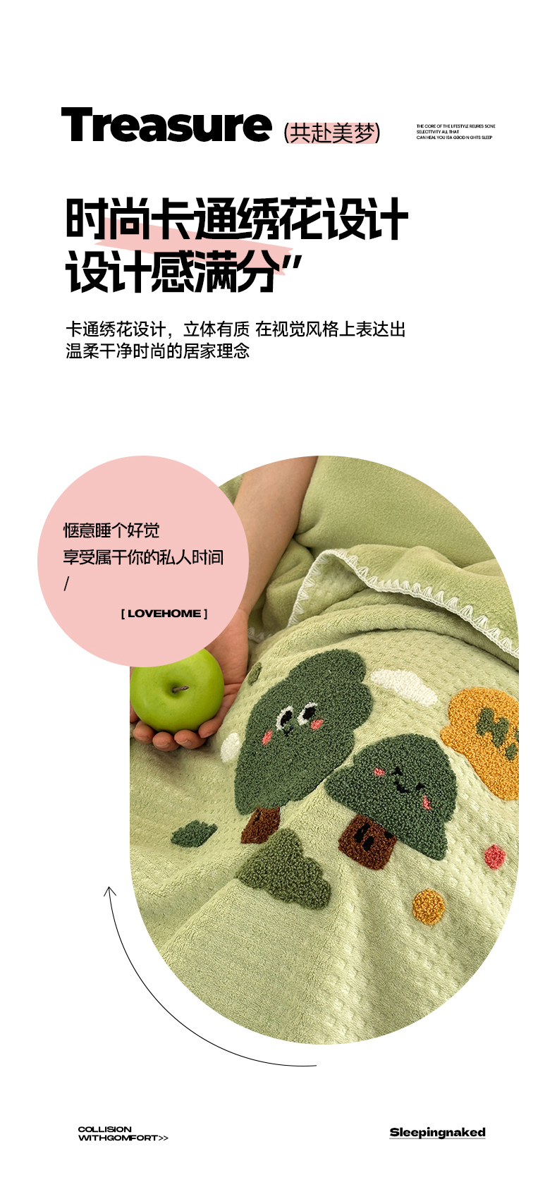 商品名称:艾佳2025新款卡通绣花款小华夫格毛毯毯子 华夫毯-绿森林