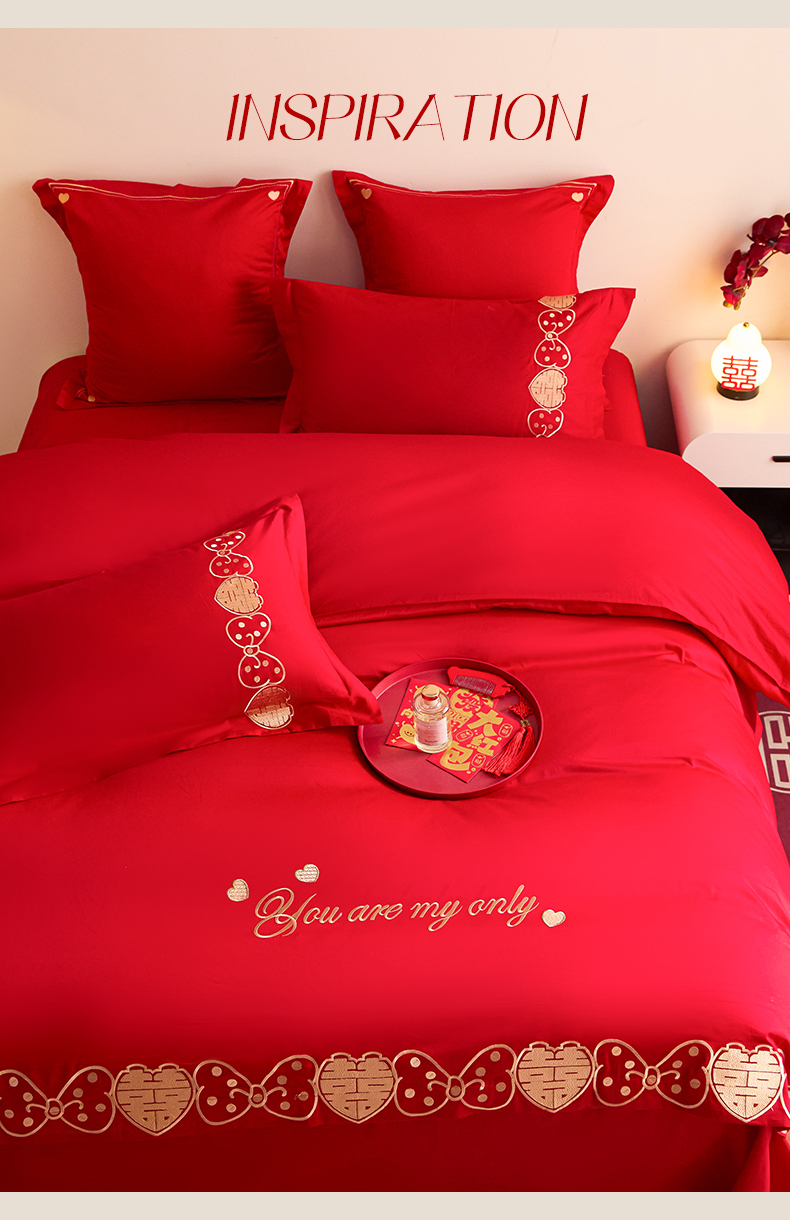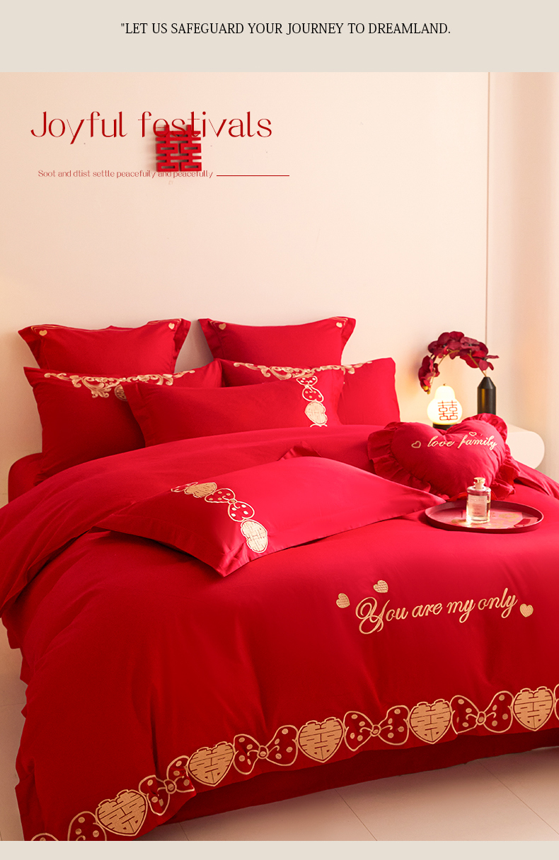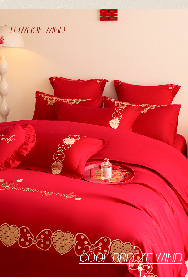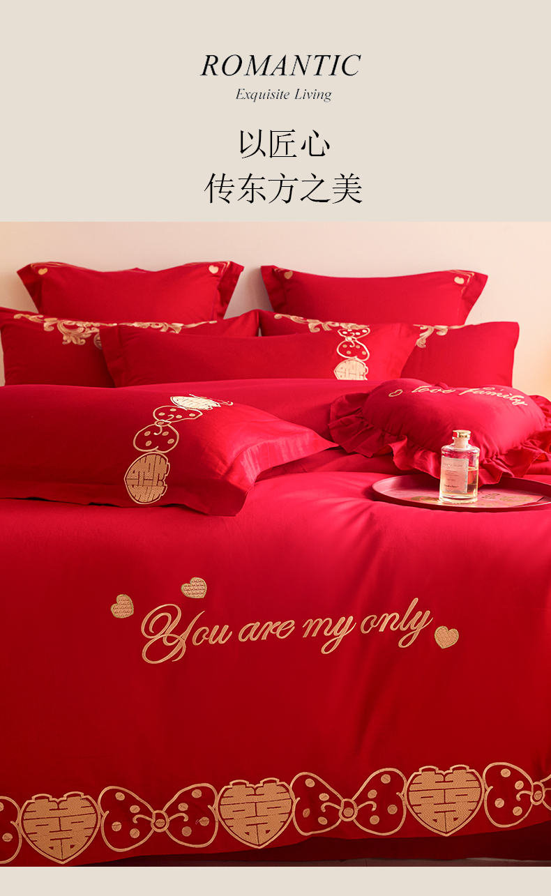 当前位置: 91家纺网 > 商品网购 > 床品套件 > 四件套 > 婚庆四件套 > 东方合美(原:皇家传奇) 2025新款长绒棉纯棉婚庆刺绣小红书系列四件套 甜