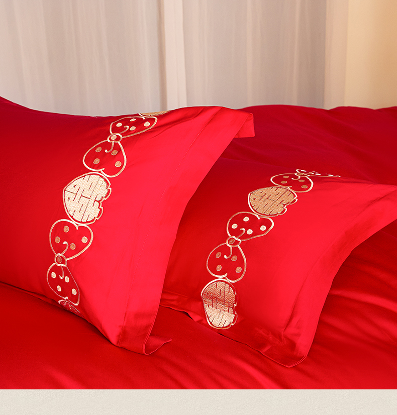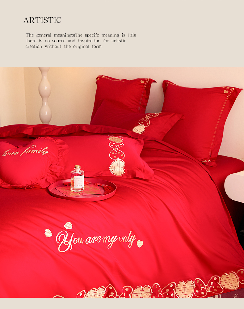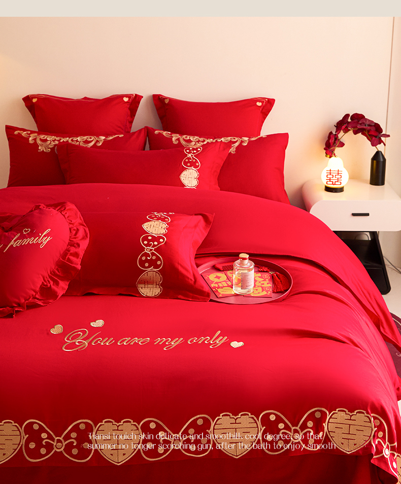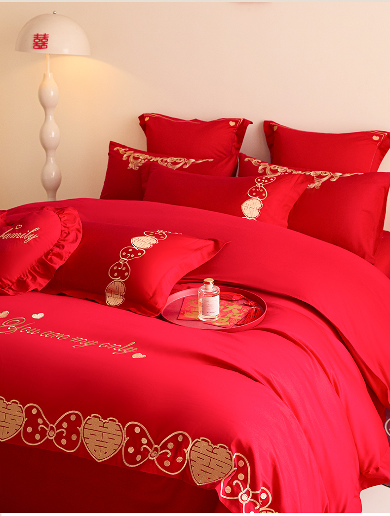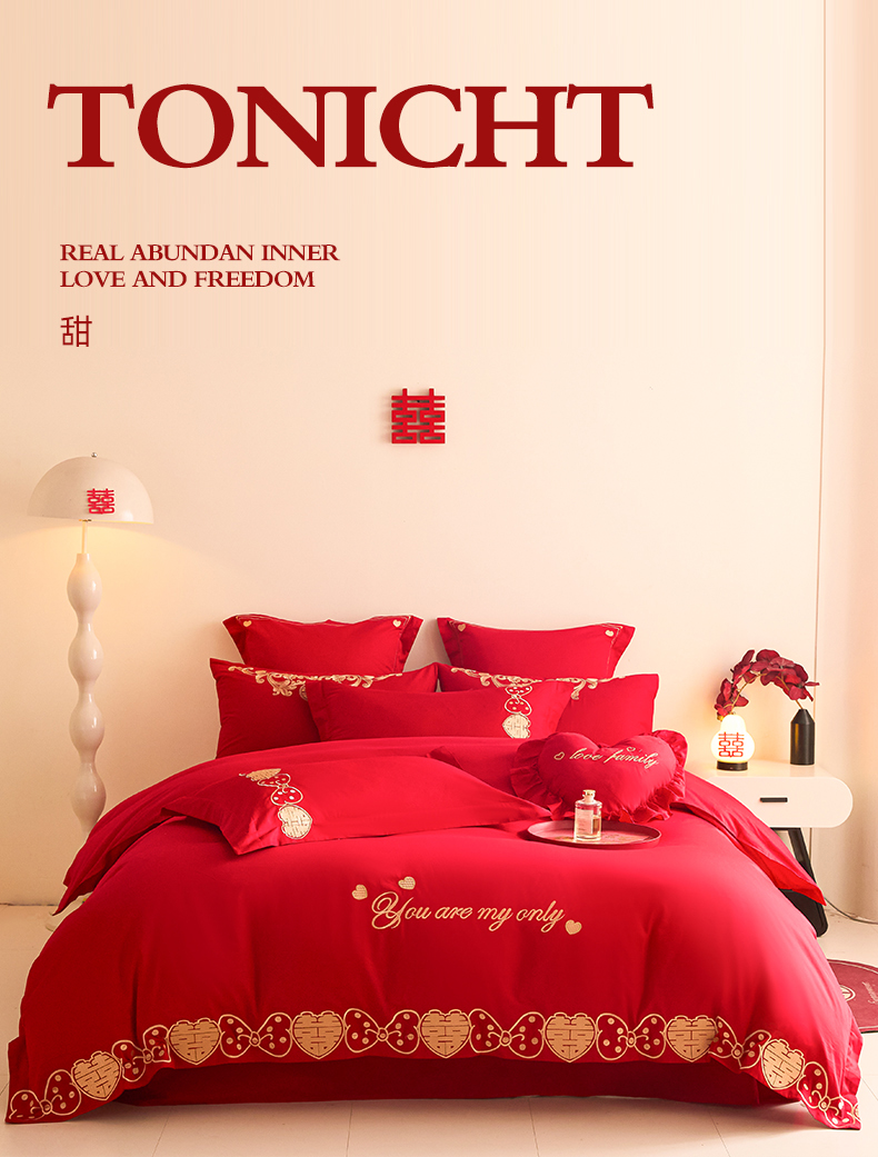当前位置: 91家纺网 > 商品网购 > 床品套件 > 四件套 > 婚庆四件套 > 东方合美(原:皇家传奇) 2025新款长绒棉纯棉婚庆刺绣小红书系列四件套 甜