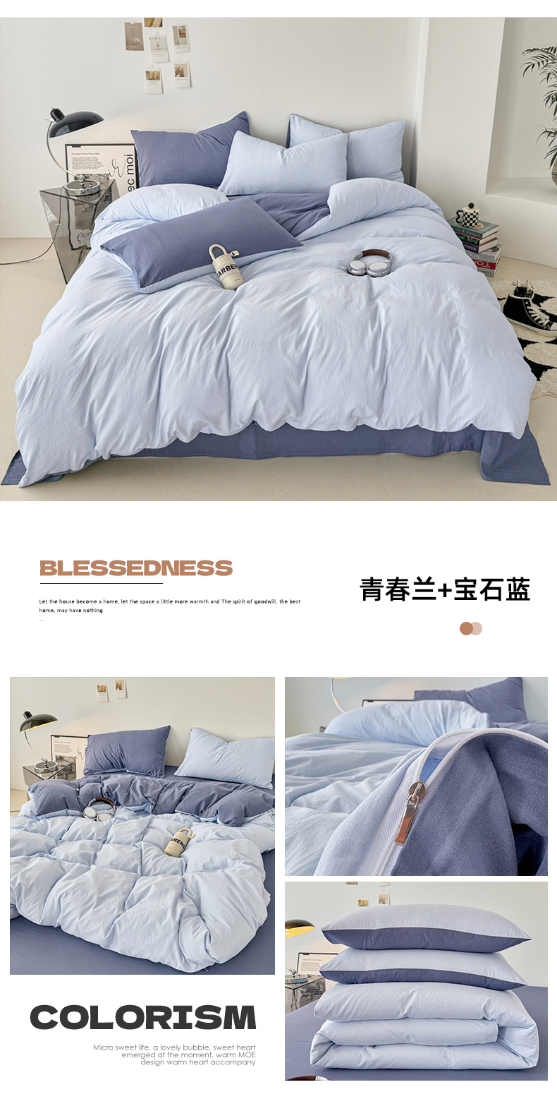 当前位置: 91家纺网 > 商品网购 > 床品套件 > 四件套 > 水洗棉四件套 > 芷凡家纺 2025新款A类加厚水洗棉云朵棉四件套 青春兰+宝石蓝