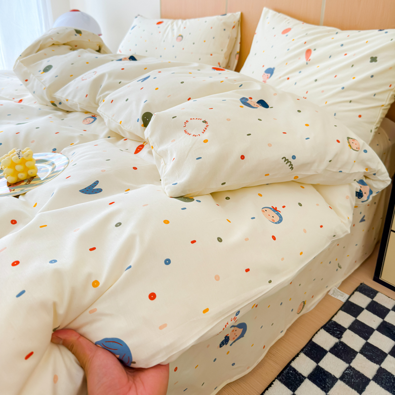 当前位置: 91家纺网 > 商品网购 > 床品套件 > 四件套 > 其它四件套 > 感遇家纺 2025新款小清新甜系全棉四件套波点小女孩