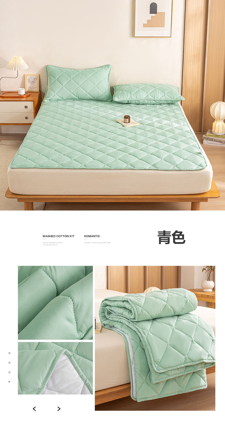 • 91家纺网 家纺一手货源 找家纺 憨豆家纺 2025新款水洗棉磨毛夹棉床笠四季床垫褥子床护垫薄款学生宿舍榻榻米垫被跨境加棉保护垫 床护垫-青色