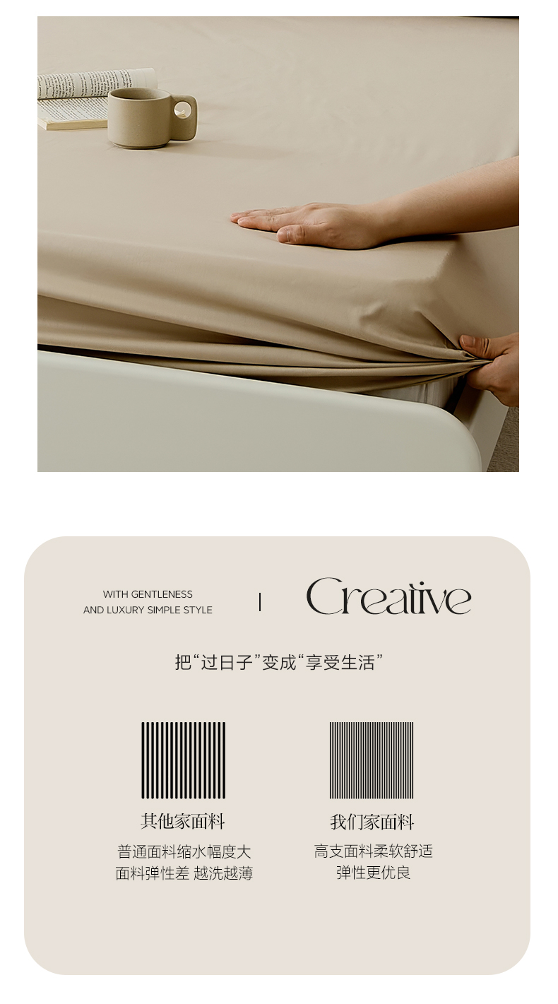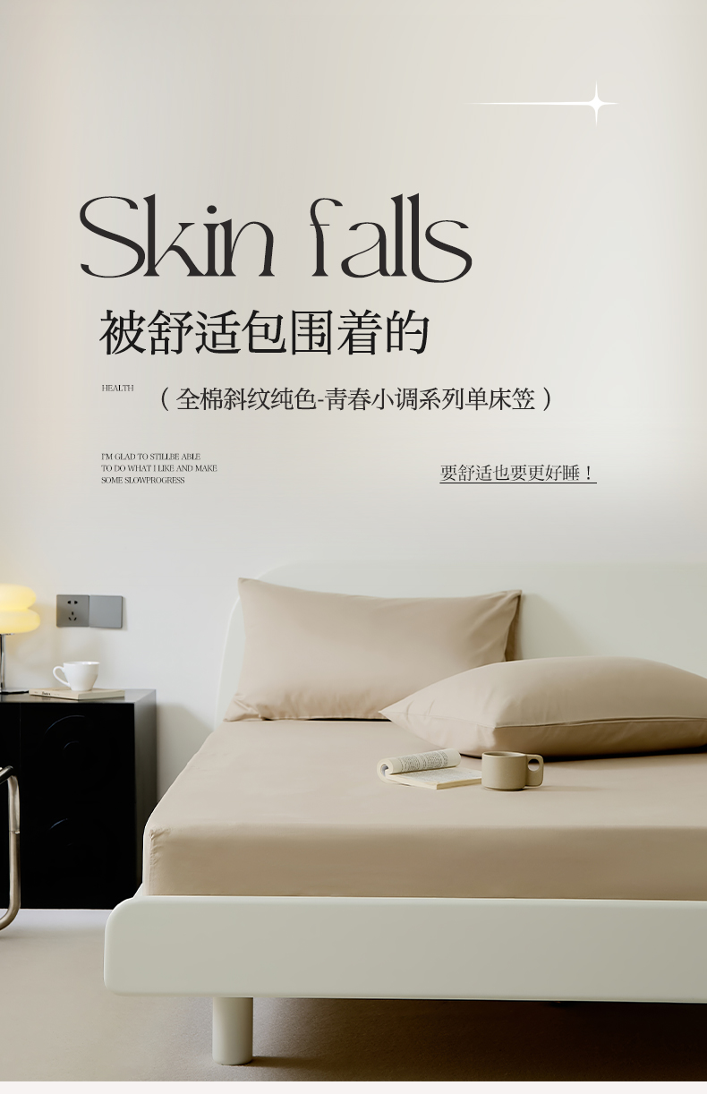 商品名称:EH家居 2025新款全棉斜纹纯色-青春小调系列单床笠 米茶