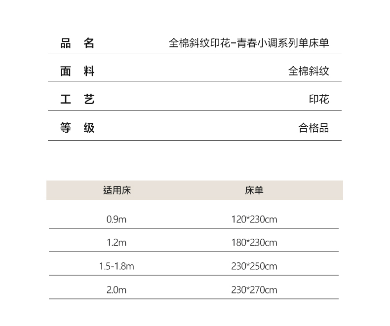 商品名称:(总)EH家居 2025新款全棉斜纹印花-青春小调系列单床单