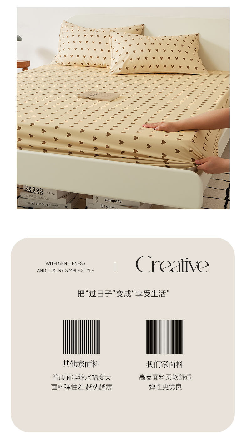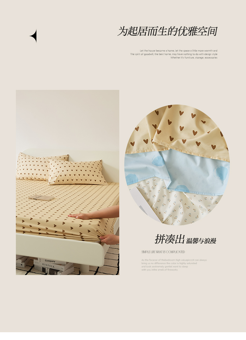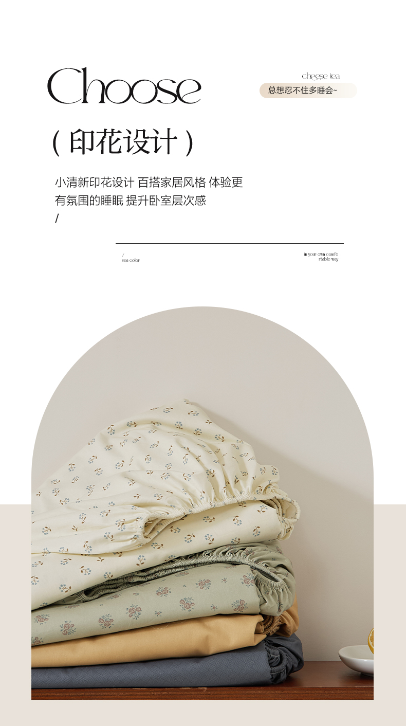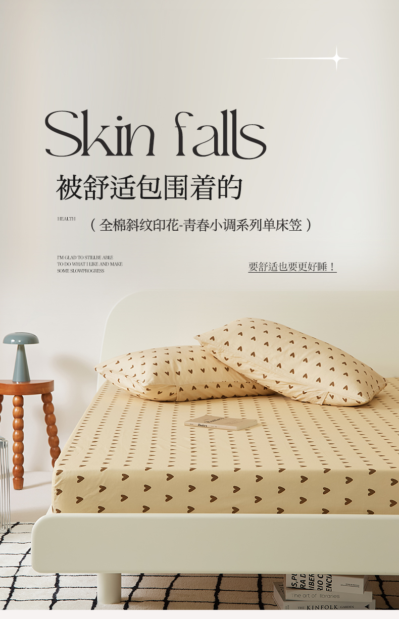 商品名称:EH家居 2025新款全棉斜纹印花-青春小调系列单床笠 焦糖心语
