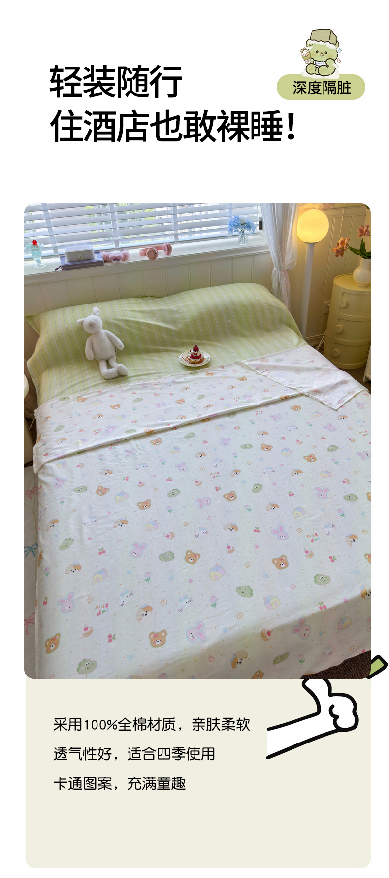 商品名称:Sweet dreams甜梦 2025新款全棉纯棉卡通印花睡袋酒店一体式全棉旅行睡袋 时尚条纹