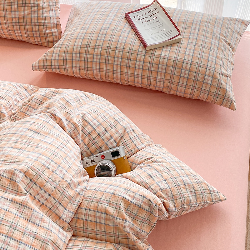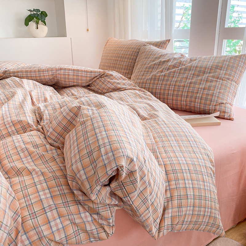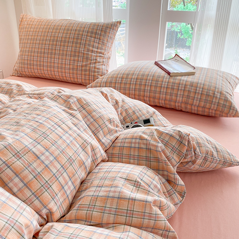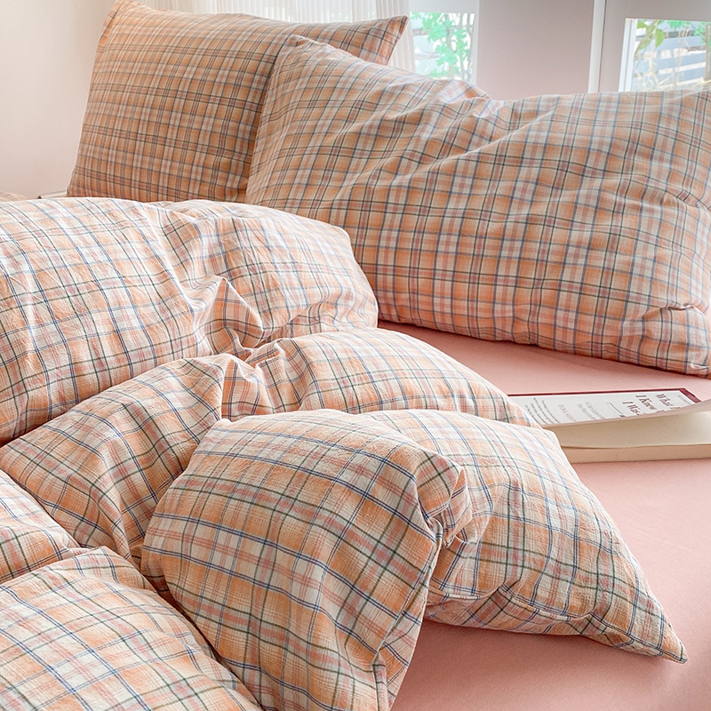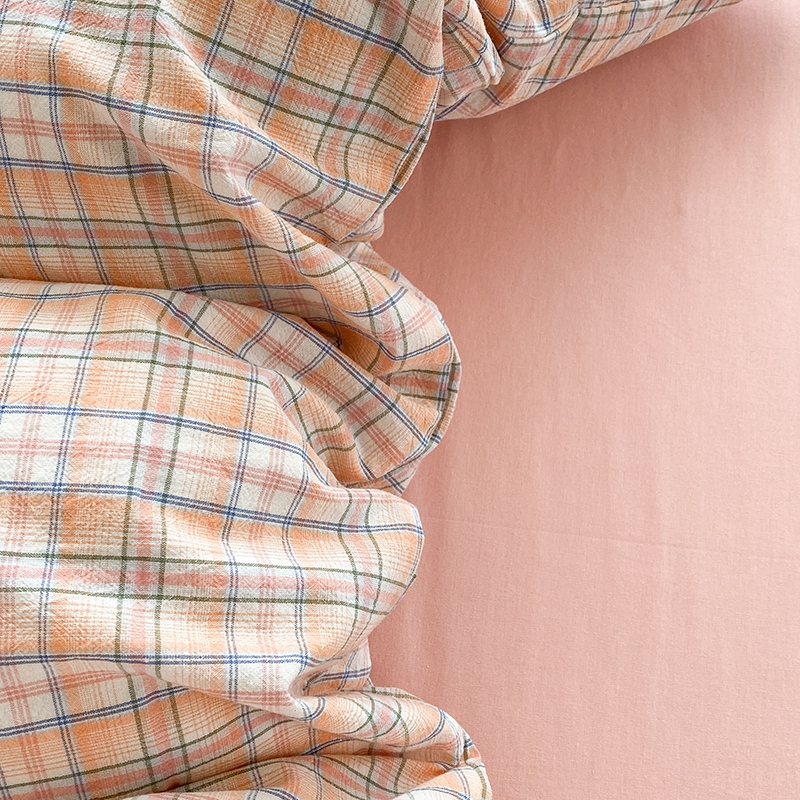 当前位置: 91家纺网 > 商品网购 > 床品套件 > 四件套 > 尚品本色2025年新款简约风全棉水洗棉格子条纹系列四件套 森屿-桔