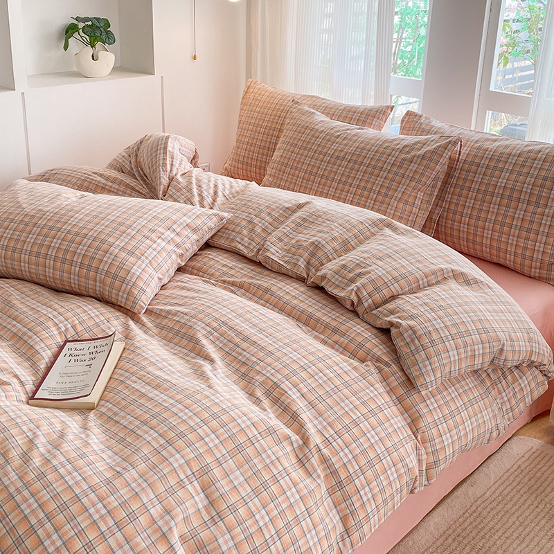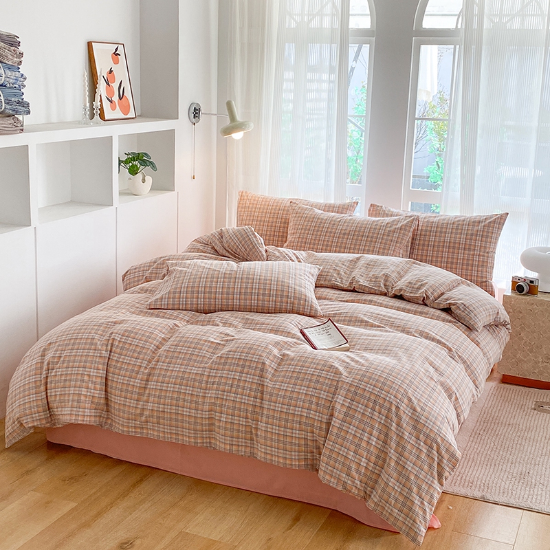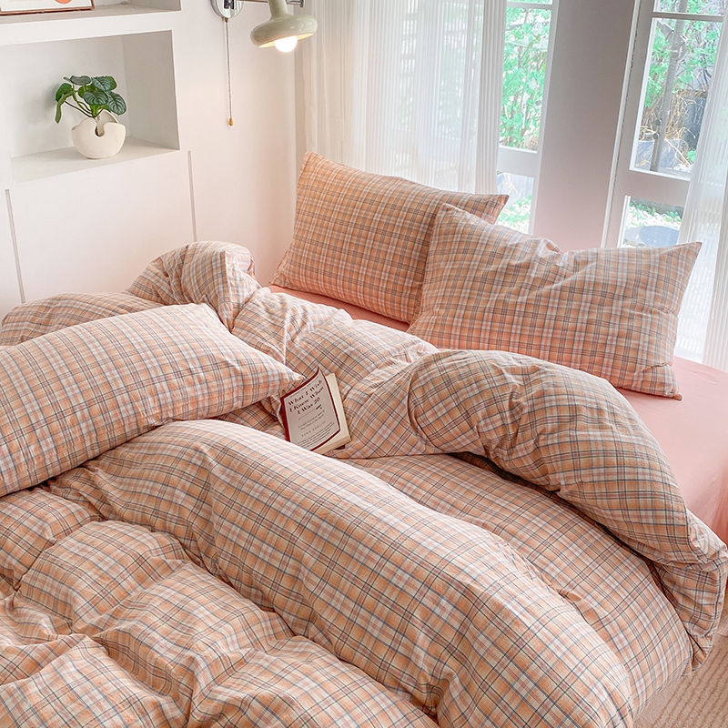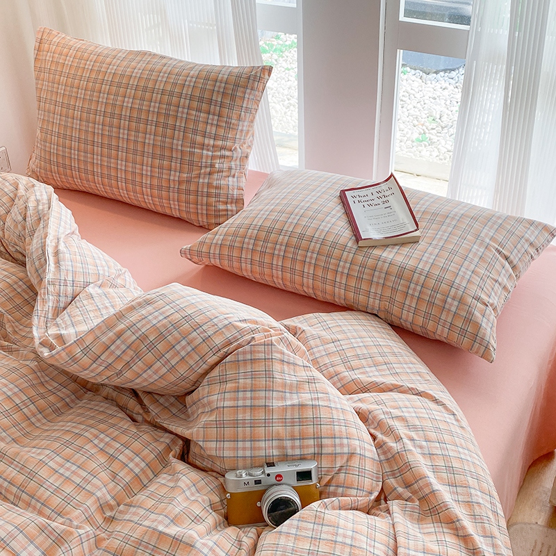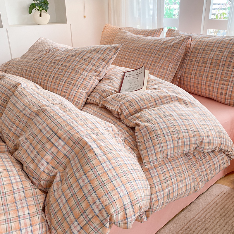 当前位置: 91家纺网 > 商品网购 > 床品套件 > 四件套 > 尚品本色2025年新款简约风全棉水洗棉格子条纹系列四件套 森屿-桔