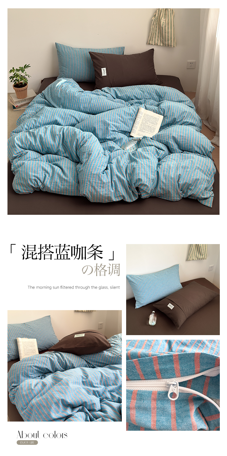 (总)玖弘家居 2025新款亲肤水洗棉四件套-蓝密条,蓝密条