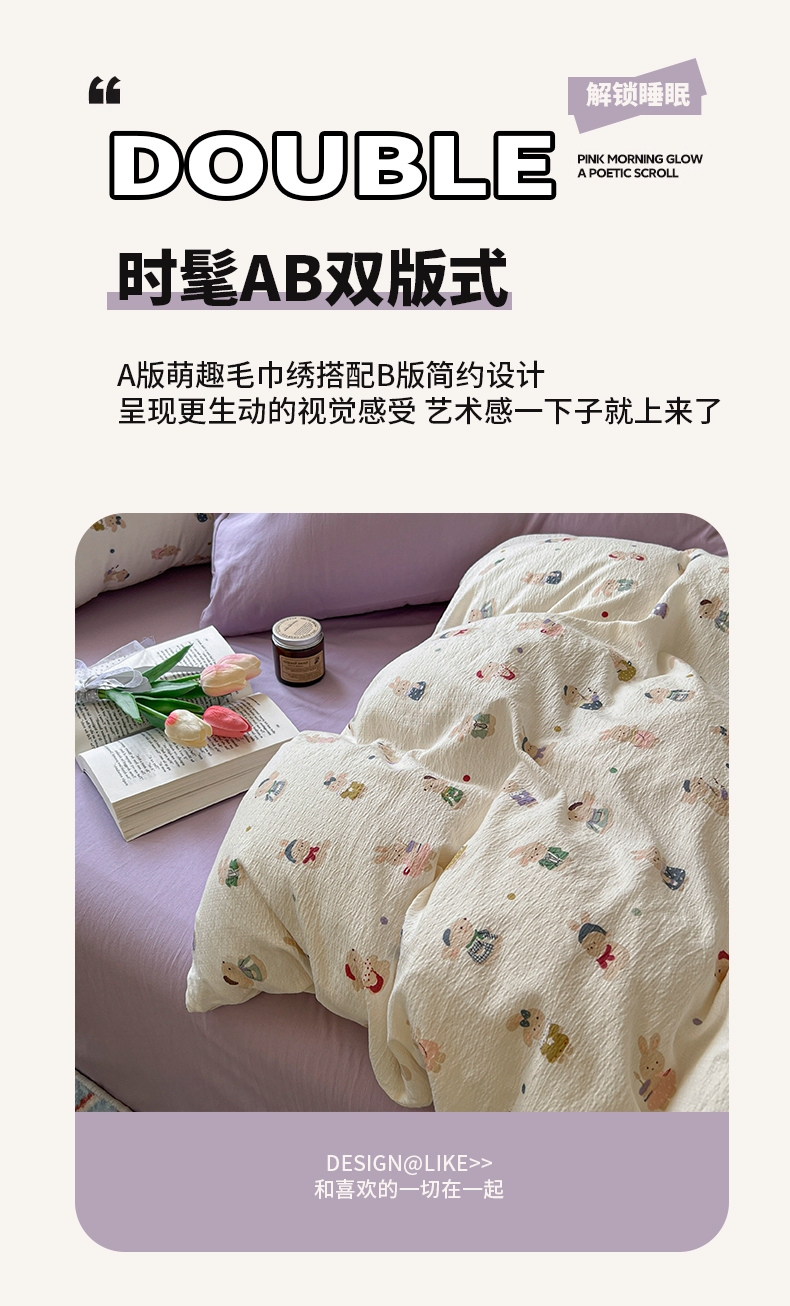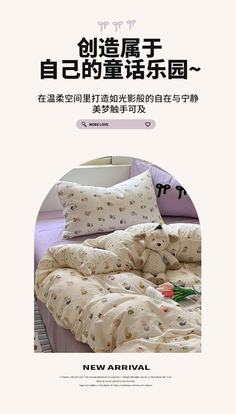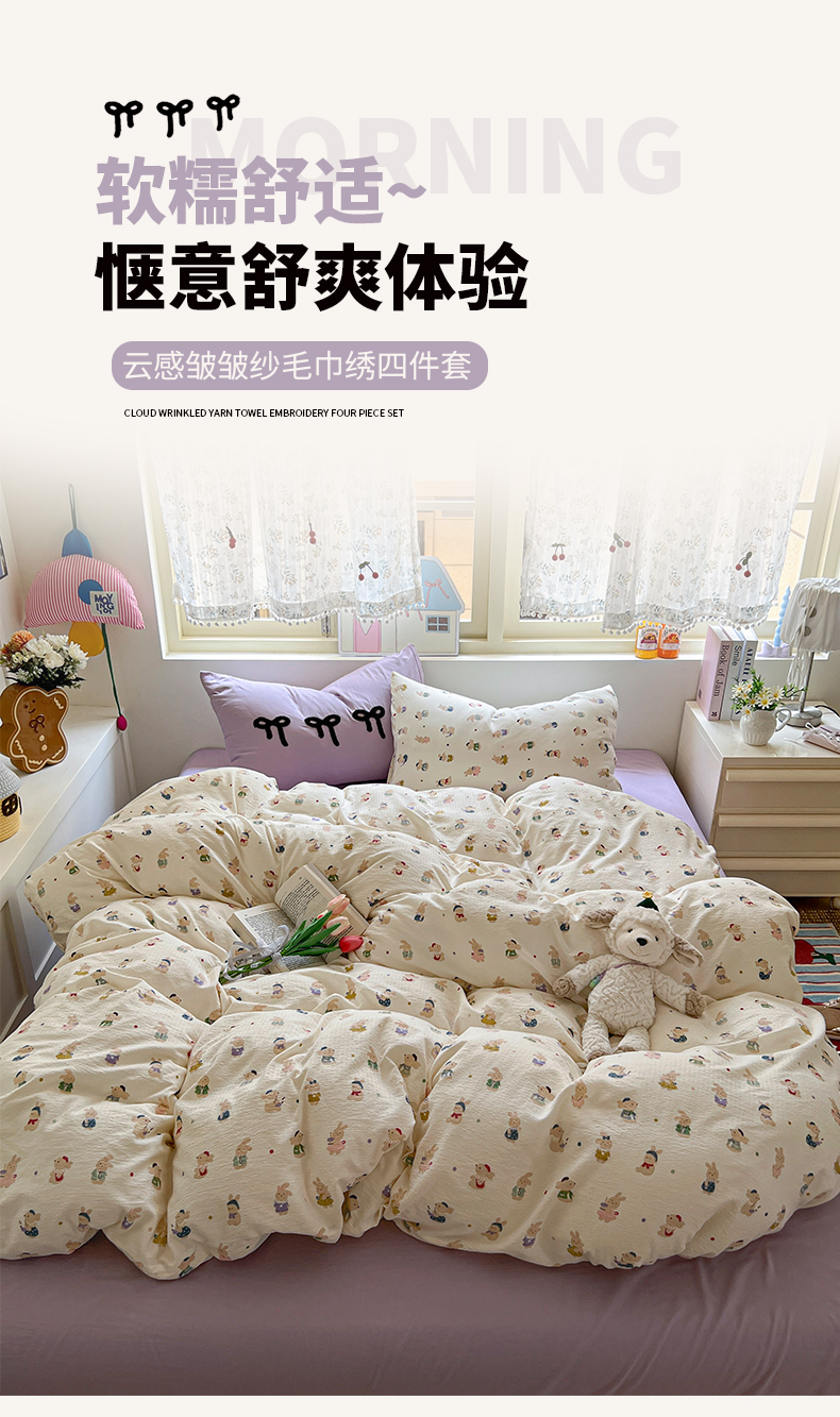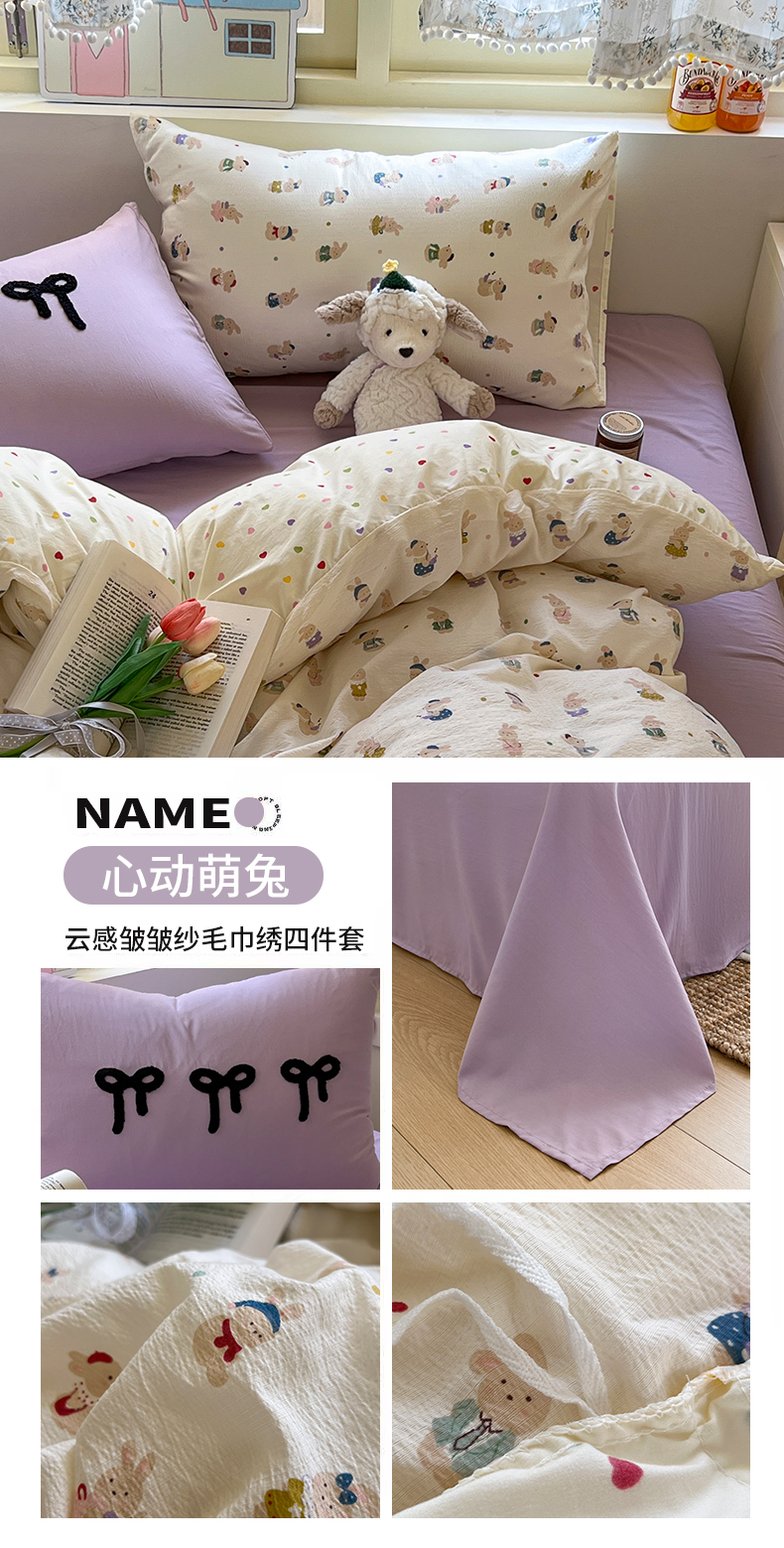 当前位置: 91家纺网 > 商品网购 > 床品套件 > 四件套 > 毛巾绣四件套 > 三元色 2025新款软糯云感毛巾绣四件套 心动萌兔