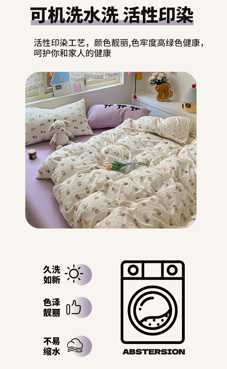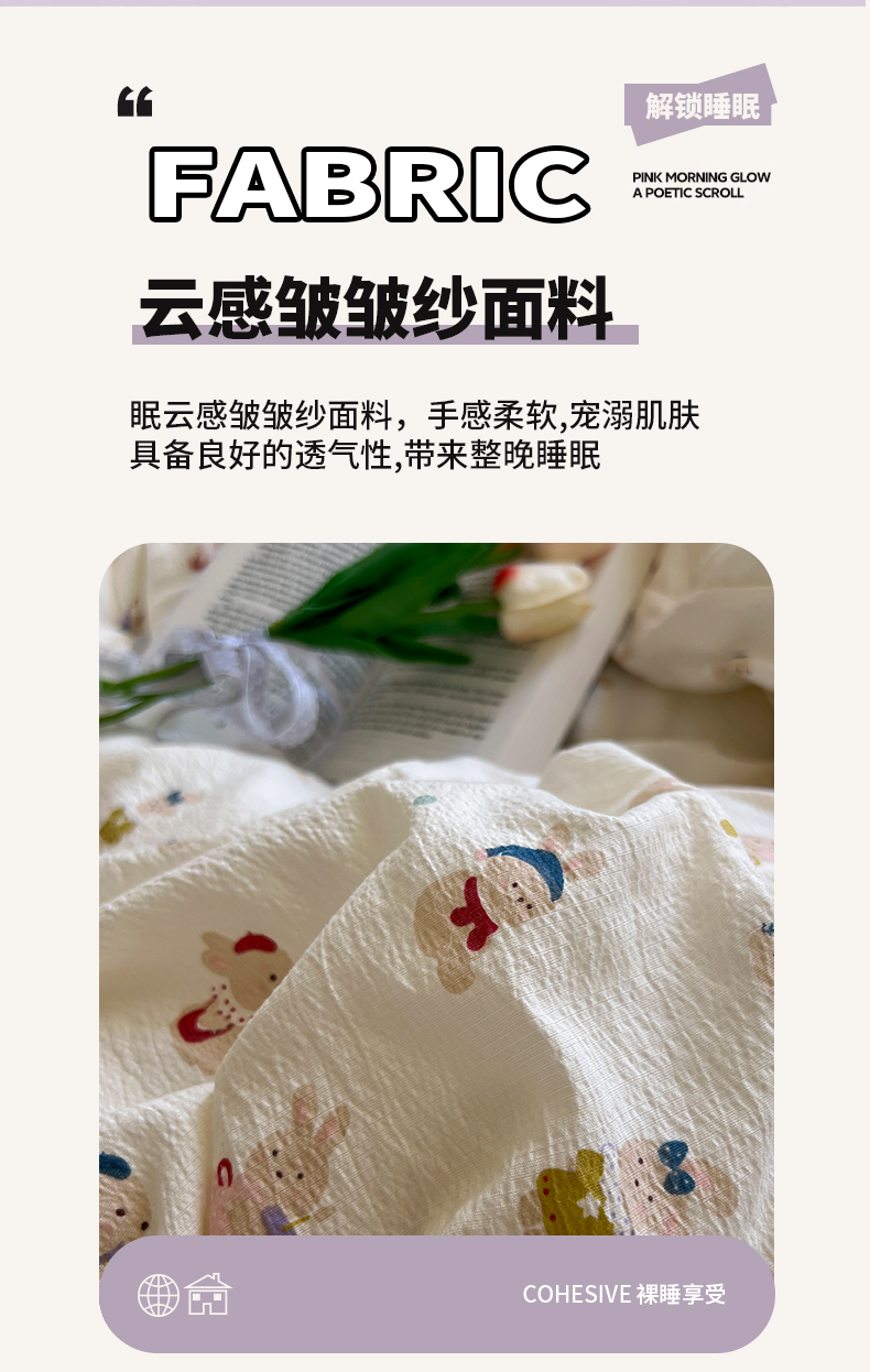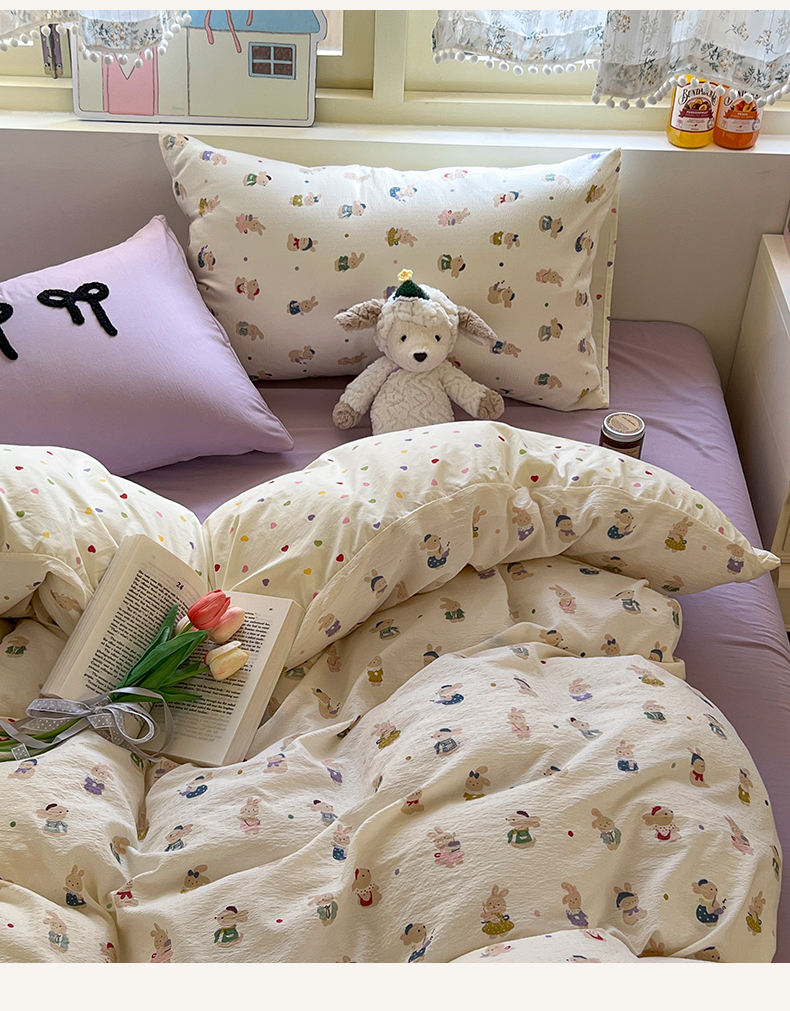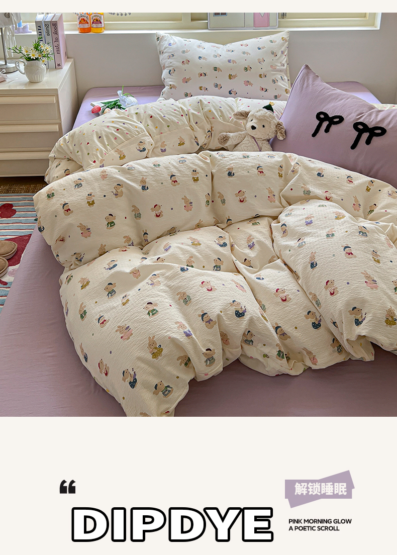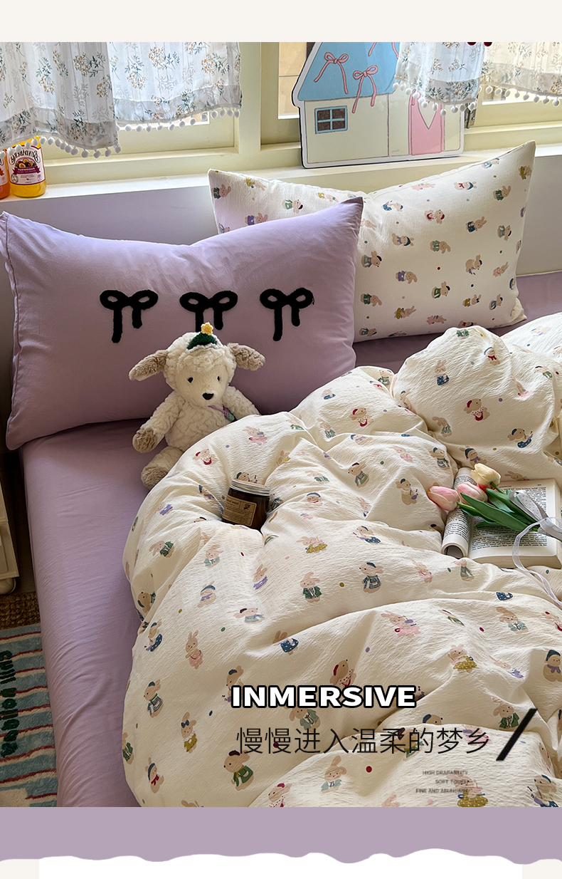 当前位置: 91家纺网 > 商品网购 > 床品套件 > 四件套 > 毛巾绣四件套 > 三元色 2025新款软糯云感毛巾绣四件套 心动萌兔