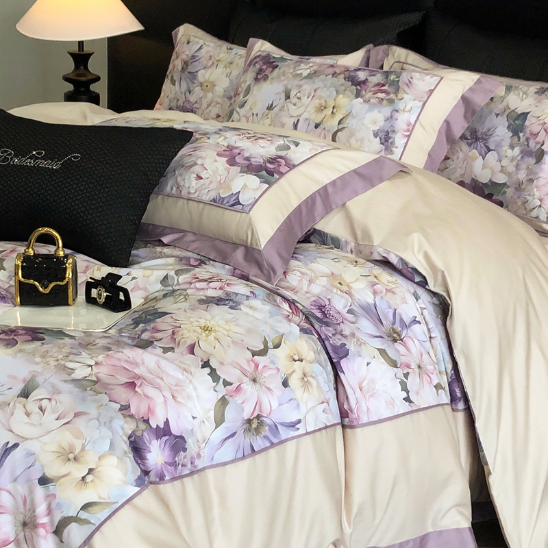 (总)佳汐蓝家纺 2025春夏新款贡缎长绒棉蝶梦花缘四件套,蝶梦花缘·粉,蝶梦花缘·紫