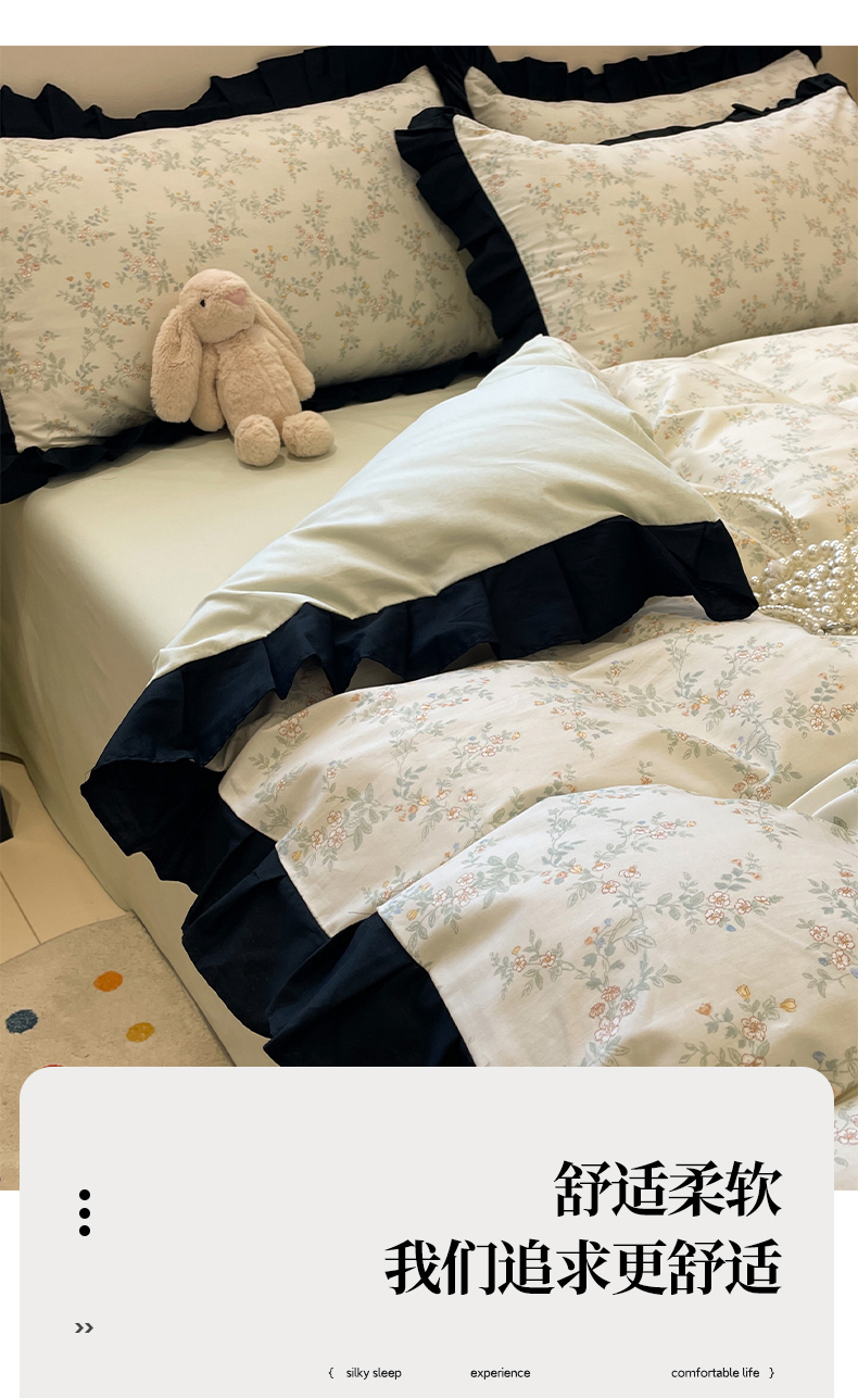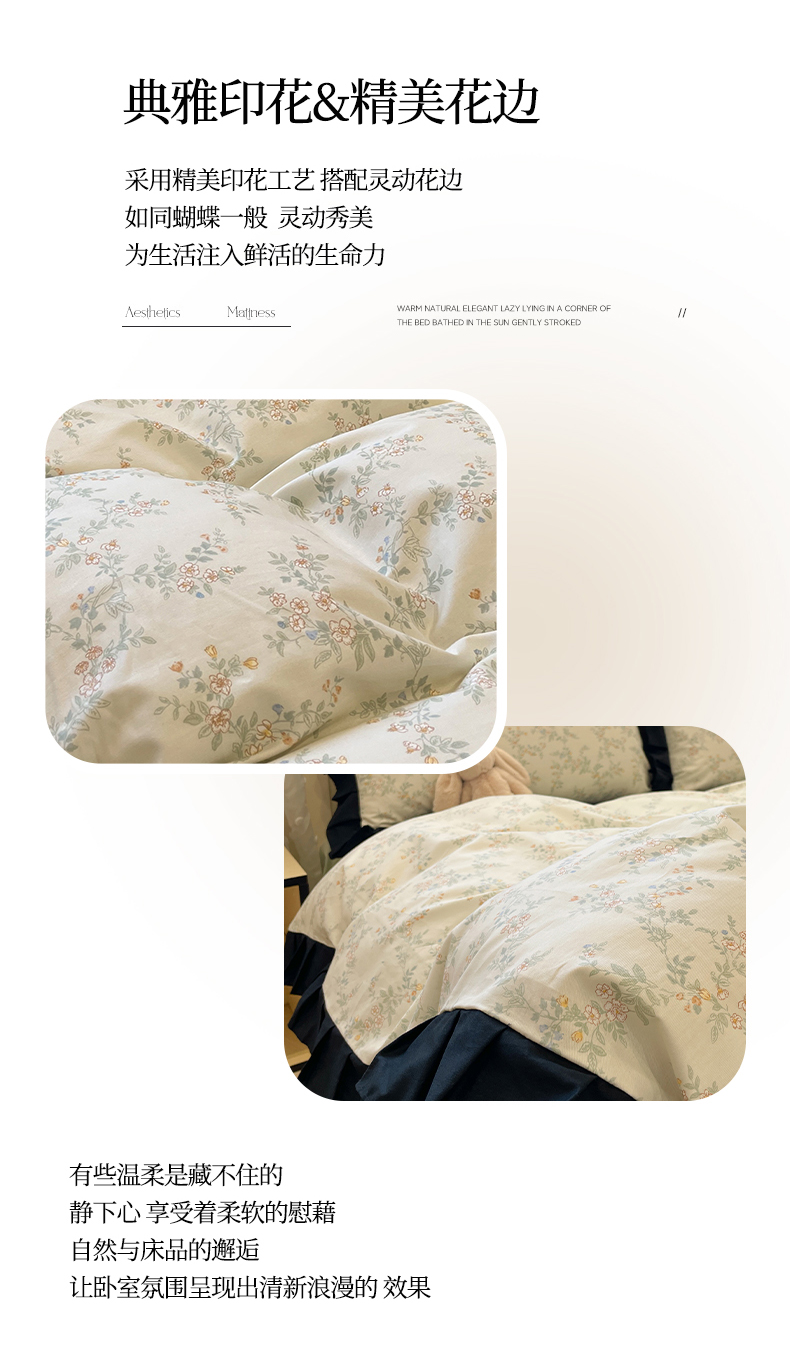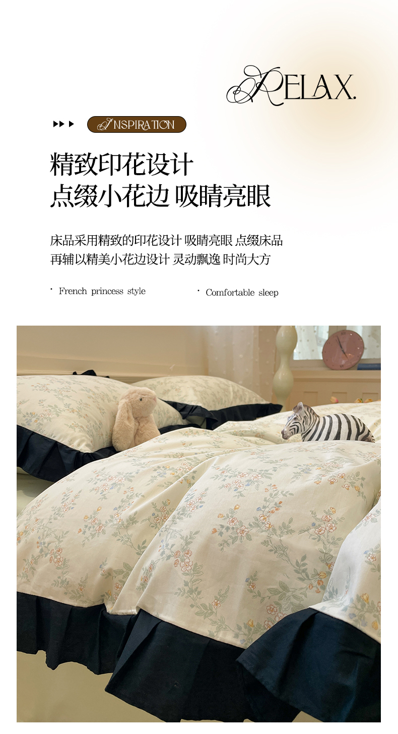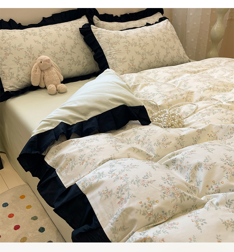 当前位置: 91家纺网 > 商品网购 > 床品套件 > 四件套 > 全棉普通四件套 > 羚羊语家纺 2025秋冬新款复古小清新花边款40支全棉纯棉轻法式13372小清新喷气印花 铃兰物语