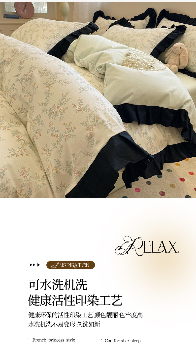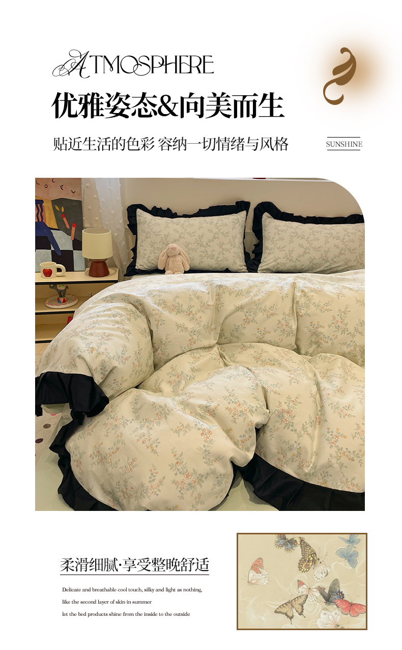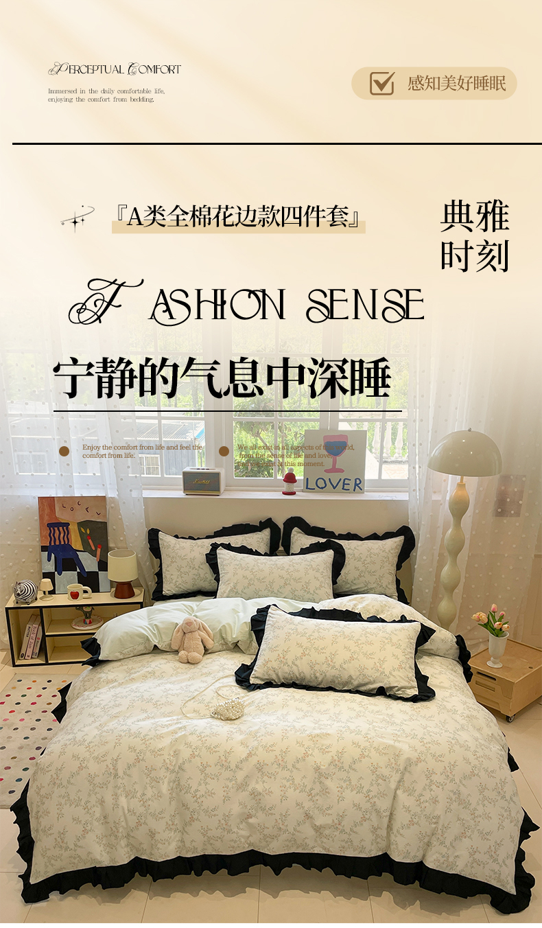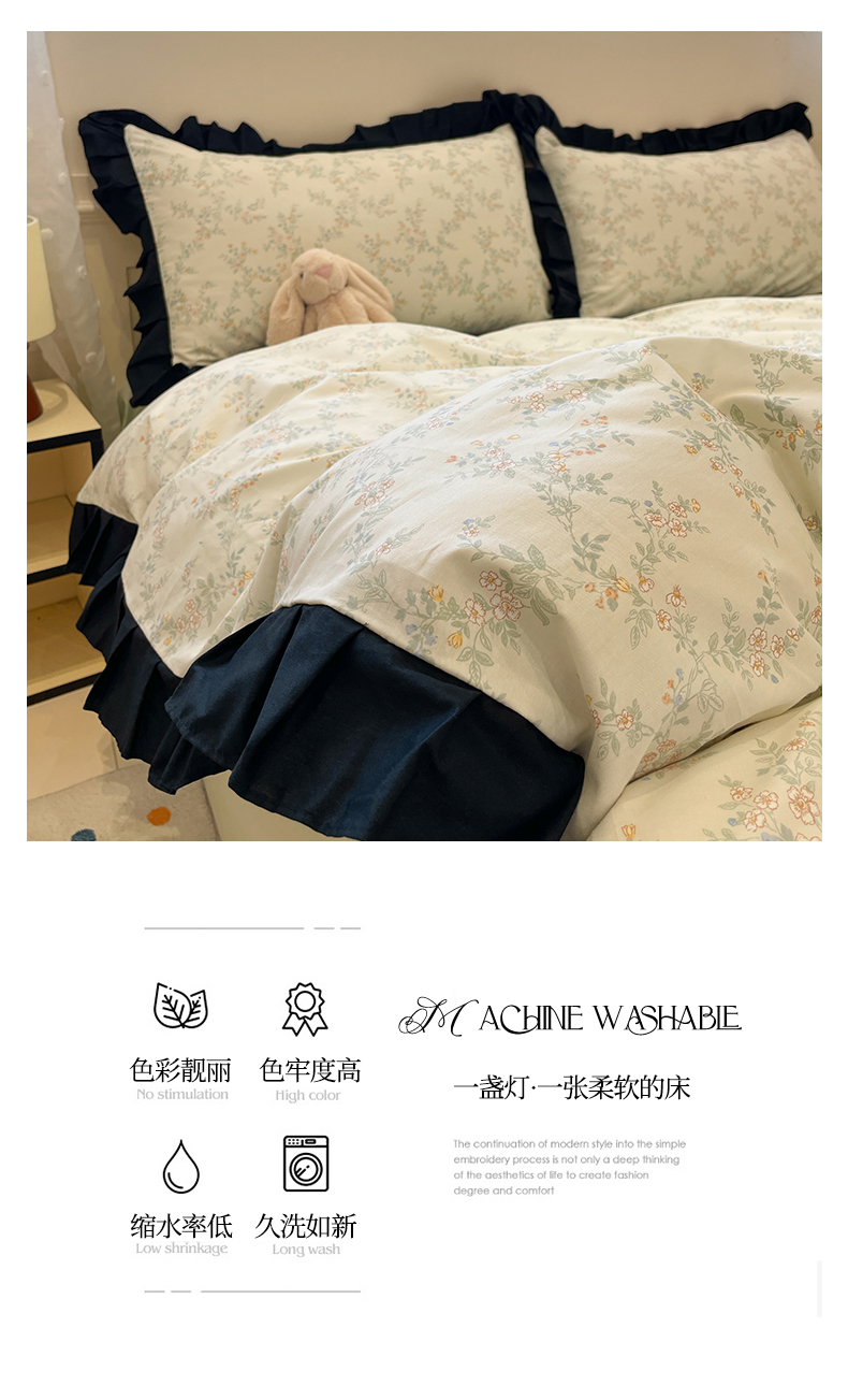 当前位置: 91家纺网 > 商品网购 > 床品套件 > 四件套 > 全棉普通四件套 > 羚羊语家纺 2025秋冬新款复古小清新花边款40支全棉纯棉轻法式13372小清新喷气印花 铃兰物语
