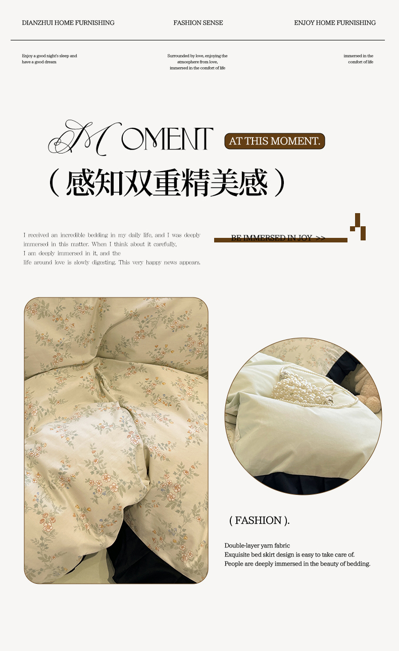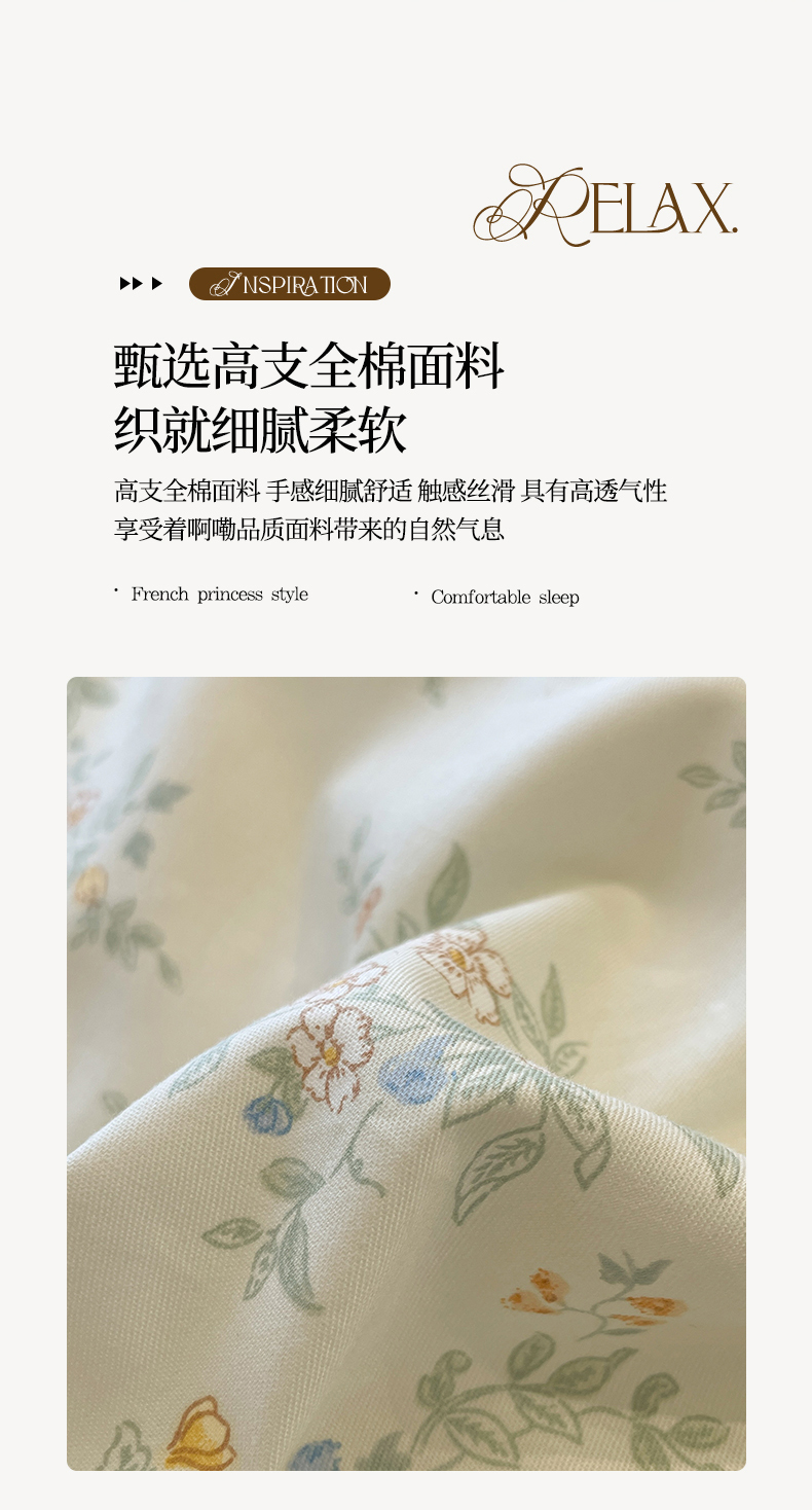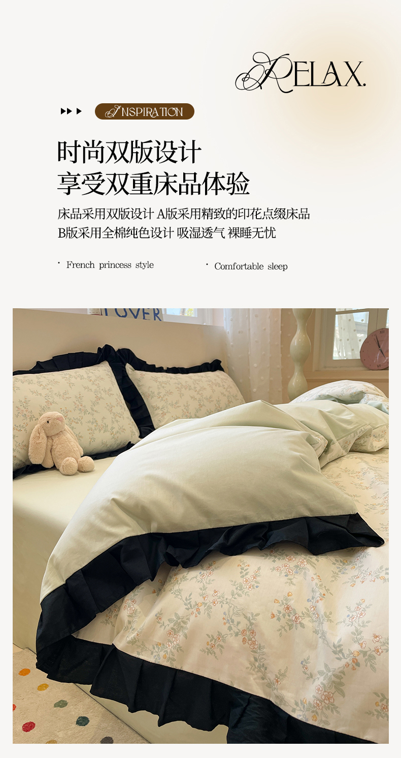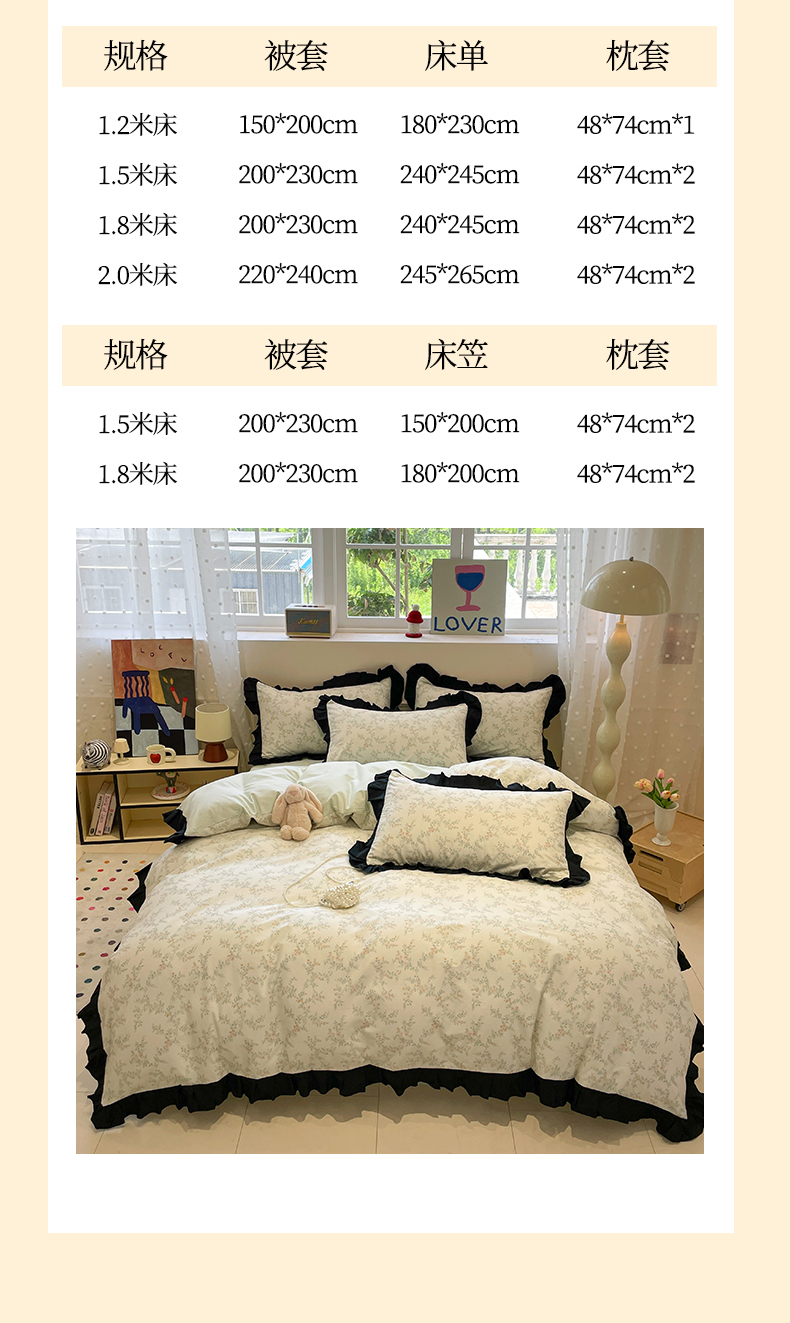 当前位置: 91家纺网 > 商品网购 > 床品套件 > 四件套 > 全棉普通四件套 > 羚羊语家纺 2025秋冬新款复古小清新花边款40支全棉纯棉轻法式13372小清新喷气印花 铃兰物语
