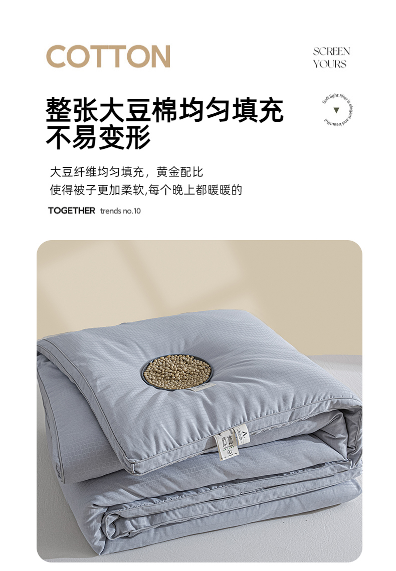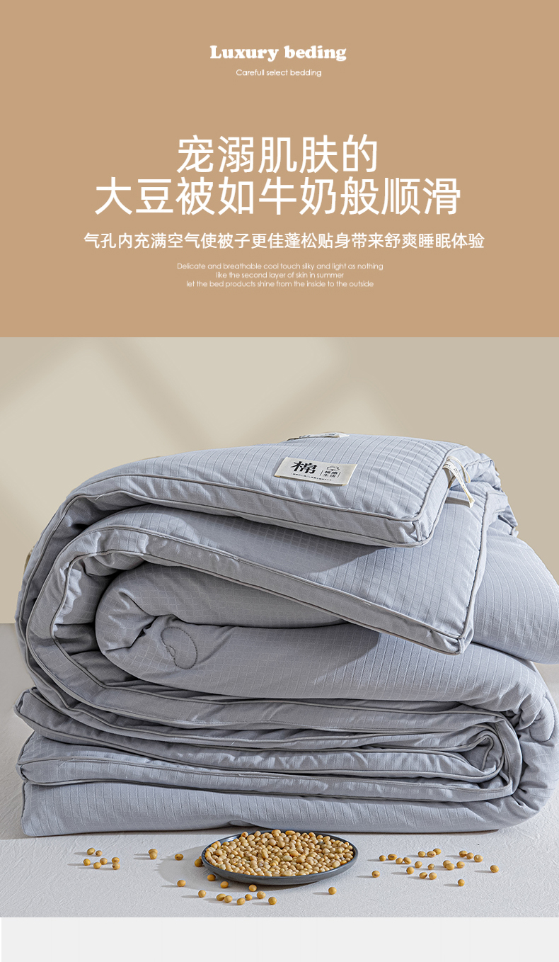 • 91家纺网 家纺一手货源 找家纺 天瑜家纺 2025新款原棉提花大豆被子母被春秋被子被芯 灰色