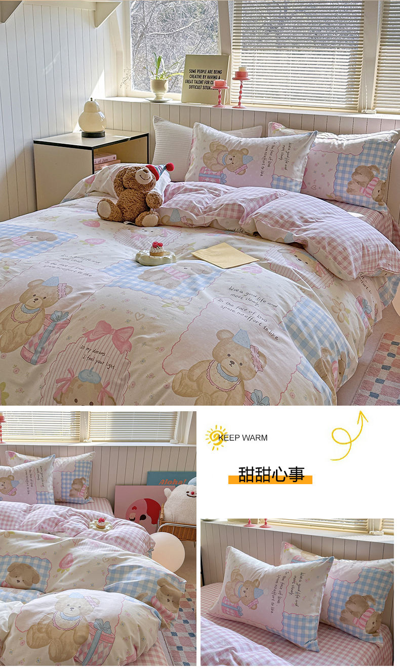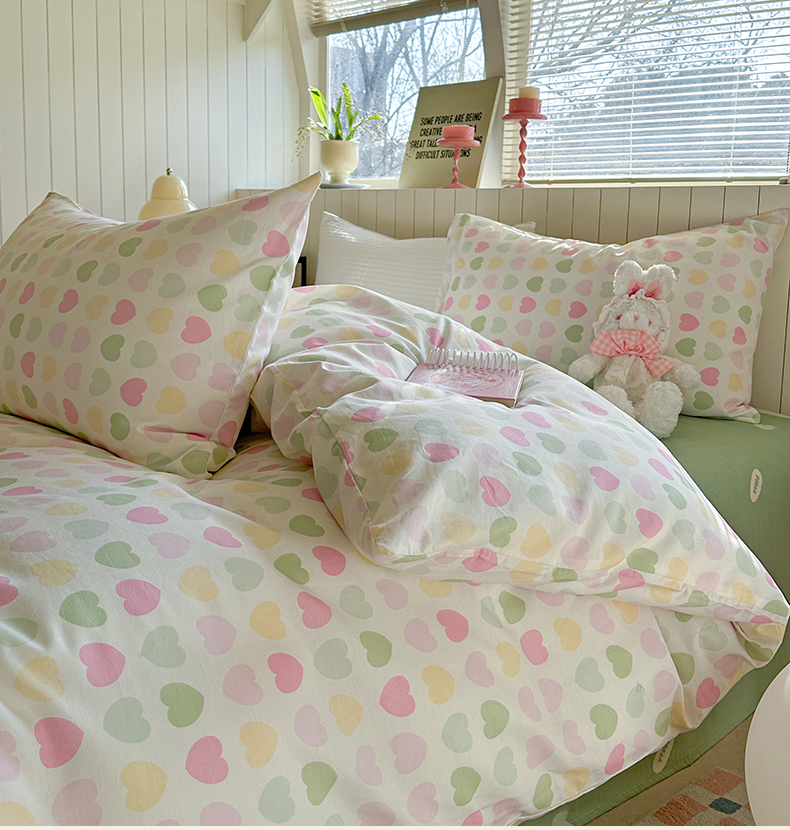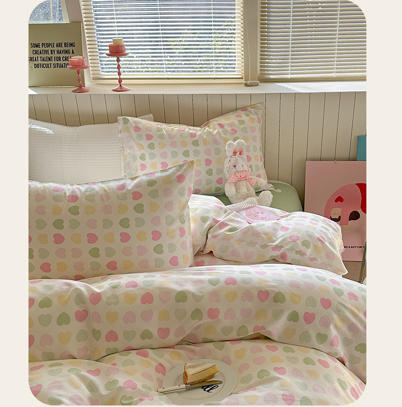 当前位置: 91家纺网 > 商品网购 > 床品套件 > 四件套 > 麦伦家居 2025新款40s斜纹全棉纯棉跑量款卡通小清新四件套 心心相印
