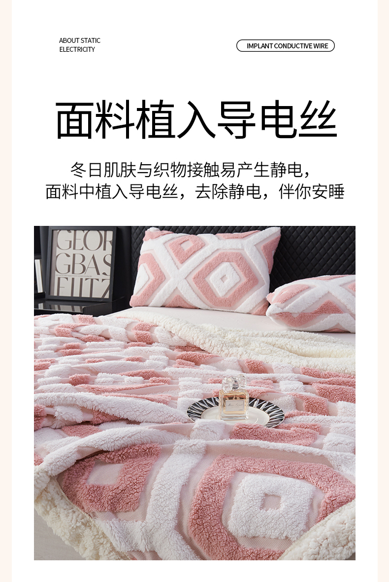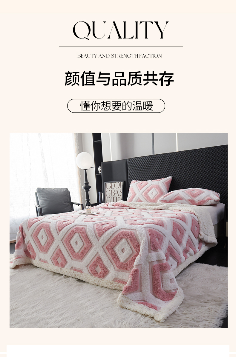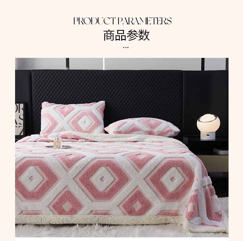 商品名称:枋梢家纺 2025新款几何空间阳离子提花镂空塔芙绒羊羔绒保暖午睡双层毛毯办公室盖毯 几何-豆沙