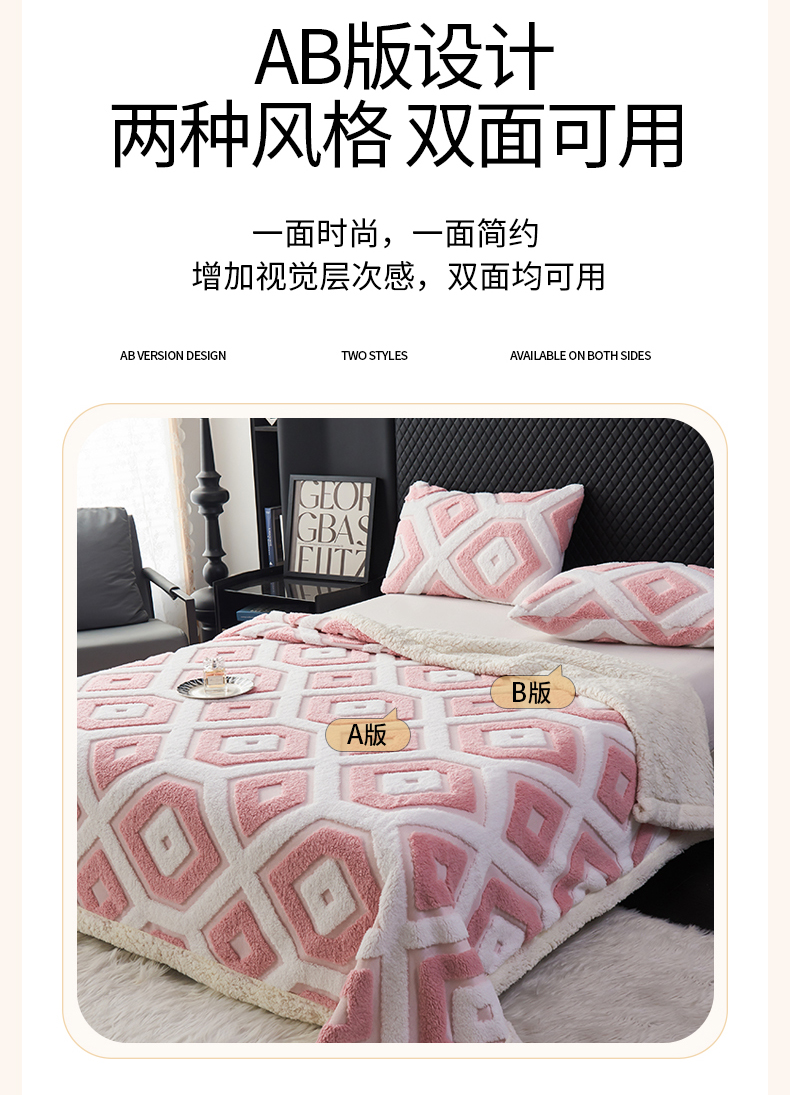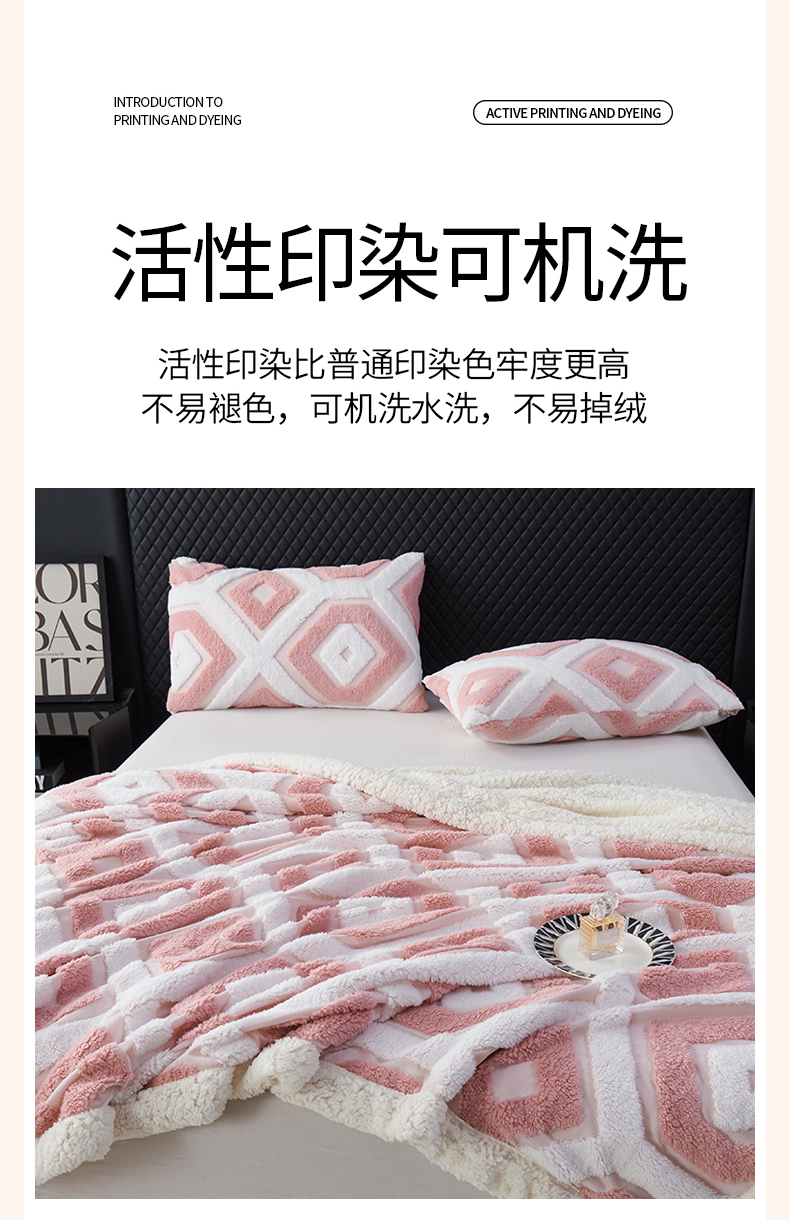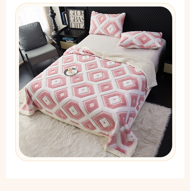 (总)枋梢家纺 2025新款亮丝兔毛绒兔毛提花北欧几何羊羔绒 双层加厚保暖盖毯 居家午睡保暖毯,几何-粉色,几何-咖色,几何-绿色,几何-米黄,几何-浅灰,几何-深灰,几何-驼色,几何-紫色,包装