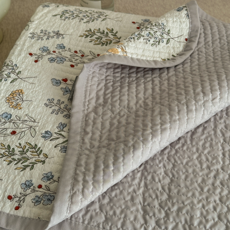 • 91家纺网 家纺一手货源 找家纺 橙子家居 2024新款A类高温砂洗木棉印花床盖三件套夹层新疆棉花四季款-实拍图 薰衣草
