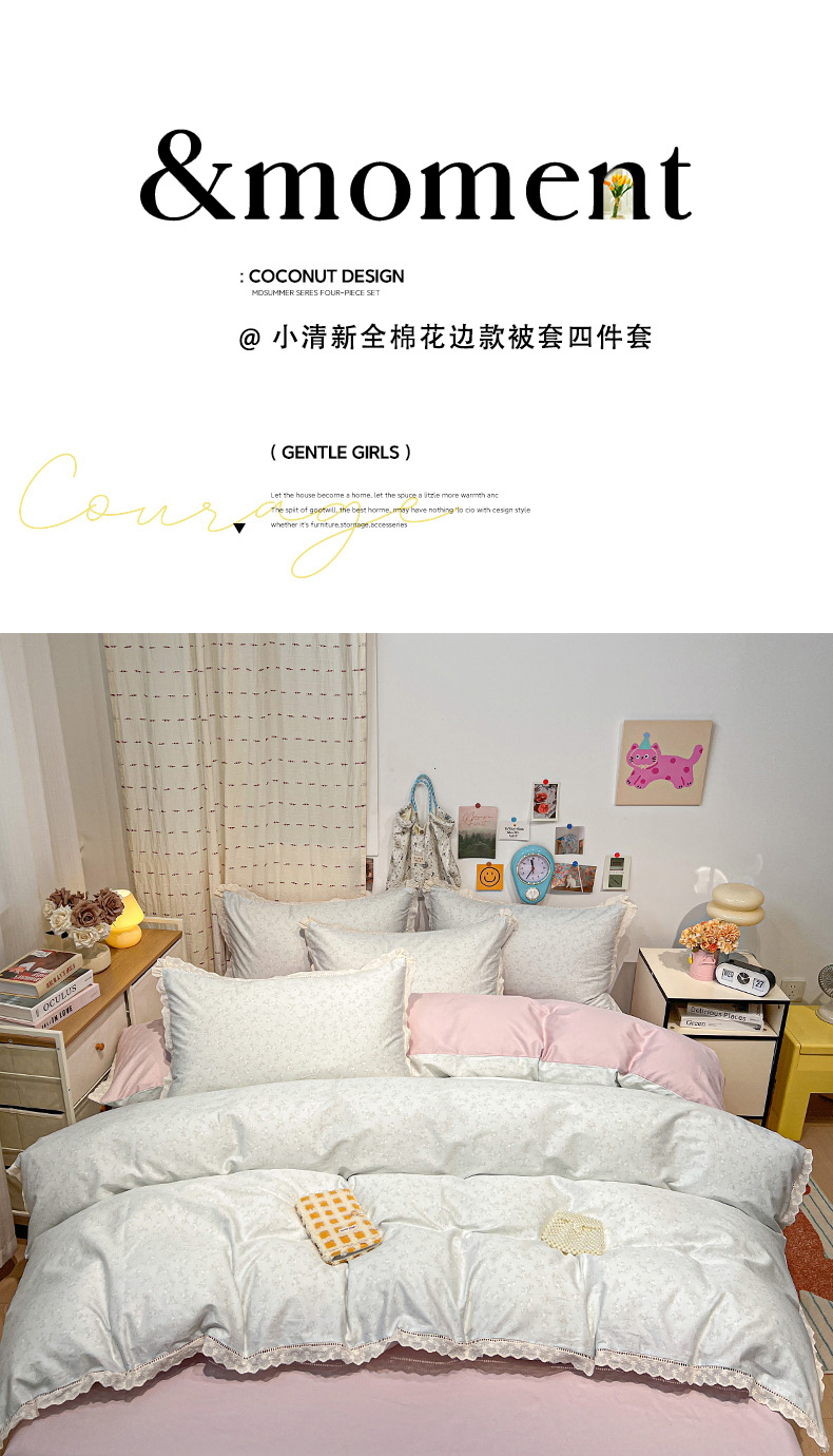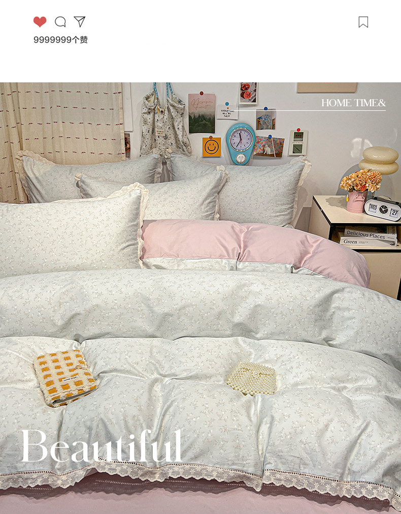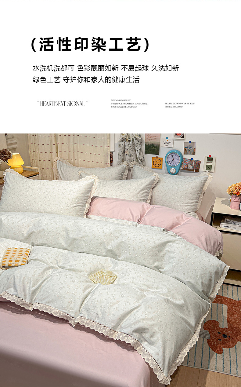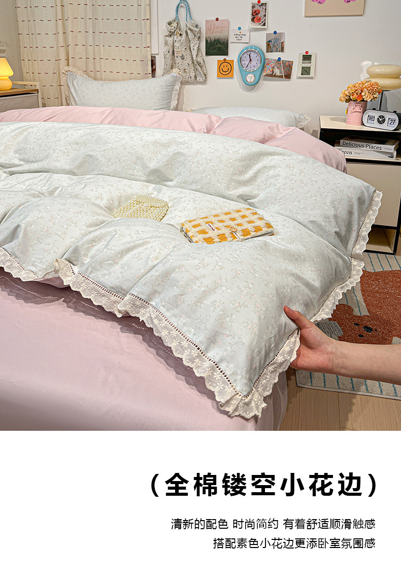 当前位置: 91家纺网 > 商品网购 > 床品套件 > 四件套 > 全棉普通四件套 > 橙子家居 2025新款小清新全棉纯棉花边款床单四件套 玲娜