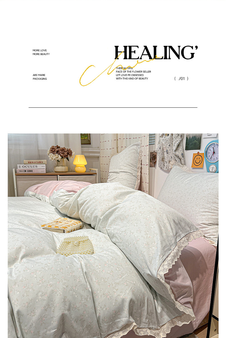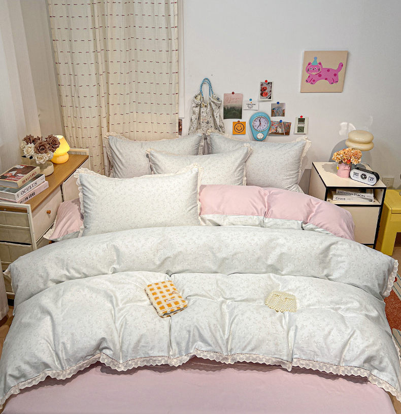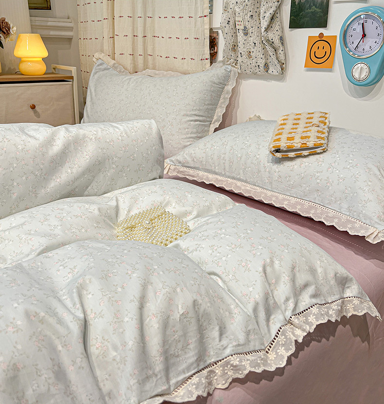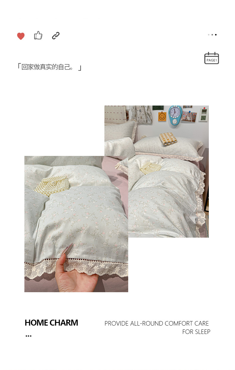 当前位置: 91家纺网 > 商品网购 > 床品套件 > 四件套 > 全棉普通四件套 > 橙子家居 2025新款小清新全棉纯棉花边款床单四件套 玲娜