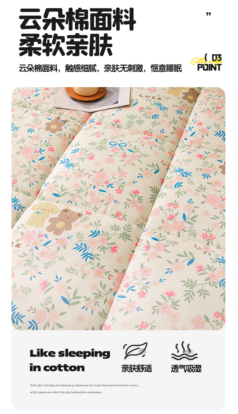 当前位置: 91家纺网 > 商品网购 > 床垫/床褥 > 普通床垫 > 梵蒂莎 2025秋冬新品云朵棉新疆棉花床垫垫背床褥垫单人床褥宿舍加厚褥子(2025新花型拍图中)花园小熊-床垫系列