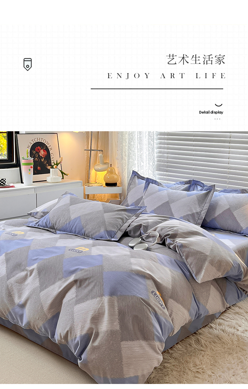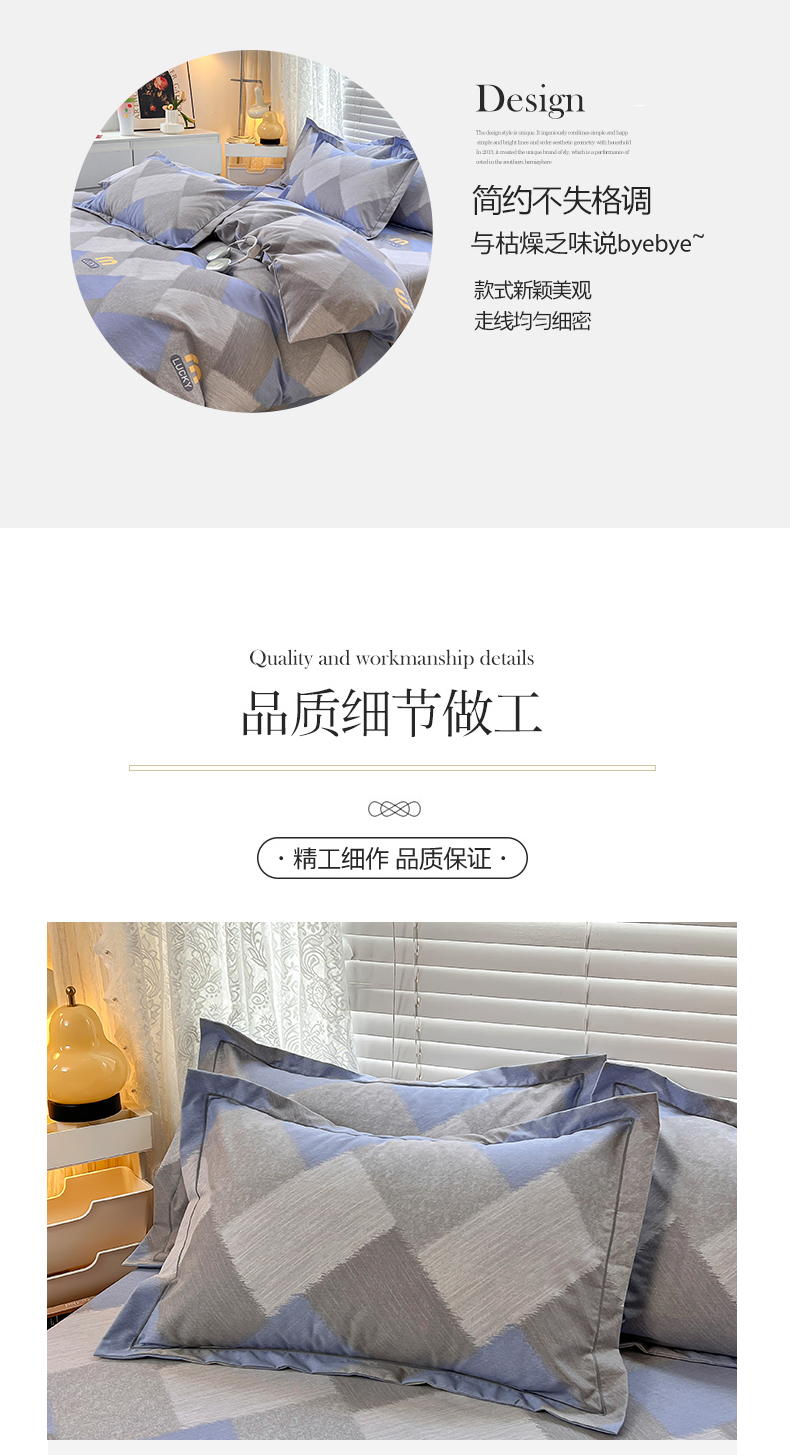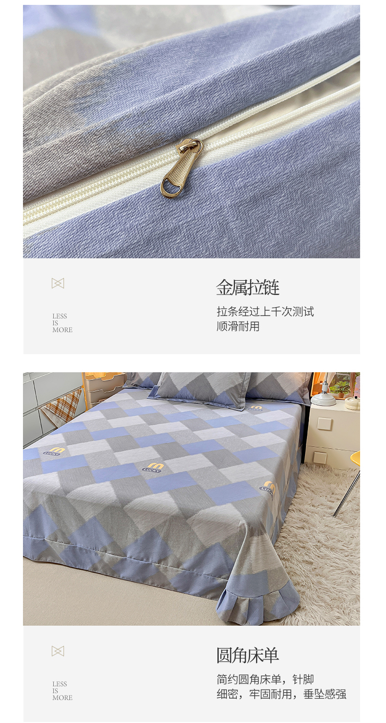 当前位置: 91家纺网 > 商品网购 > 床品套件 > 四件套 > 普通磨毛四件套 > 简约家纺 2025新款全棉磨毛四件套 灵感-蓝