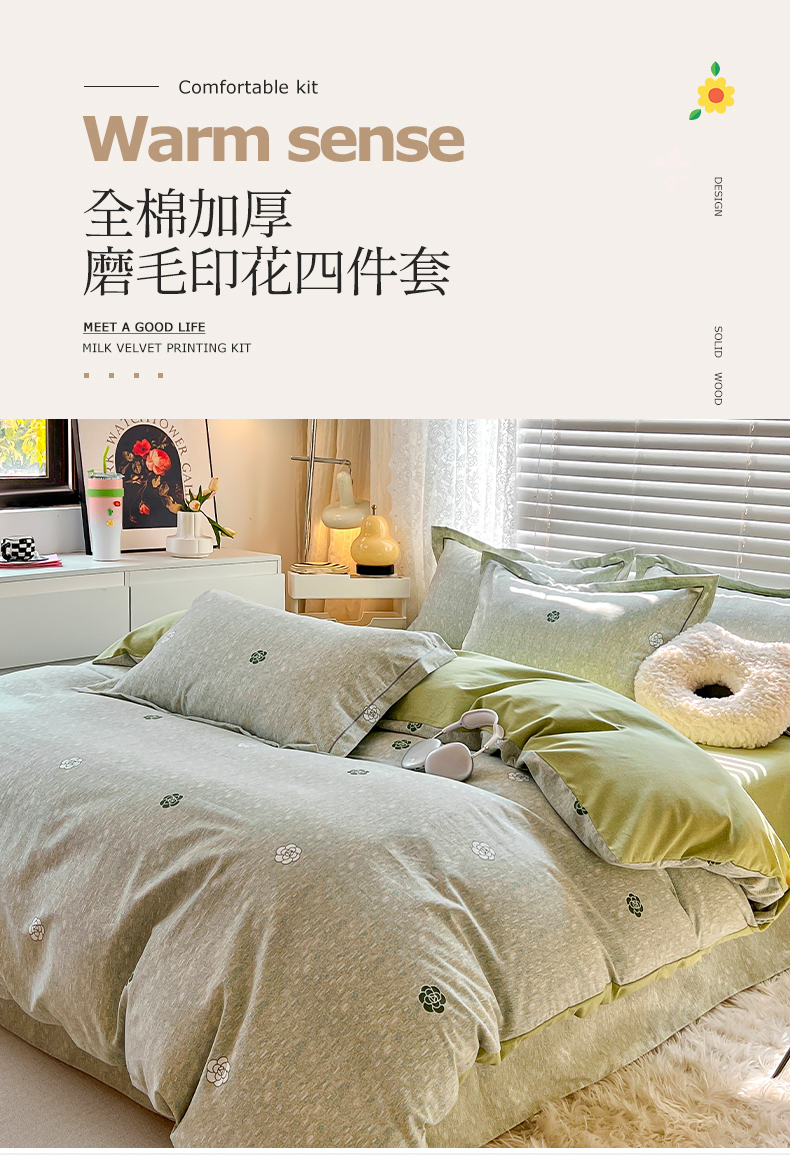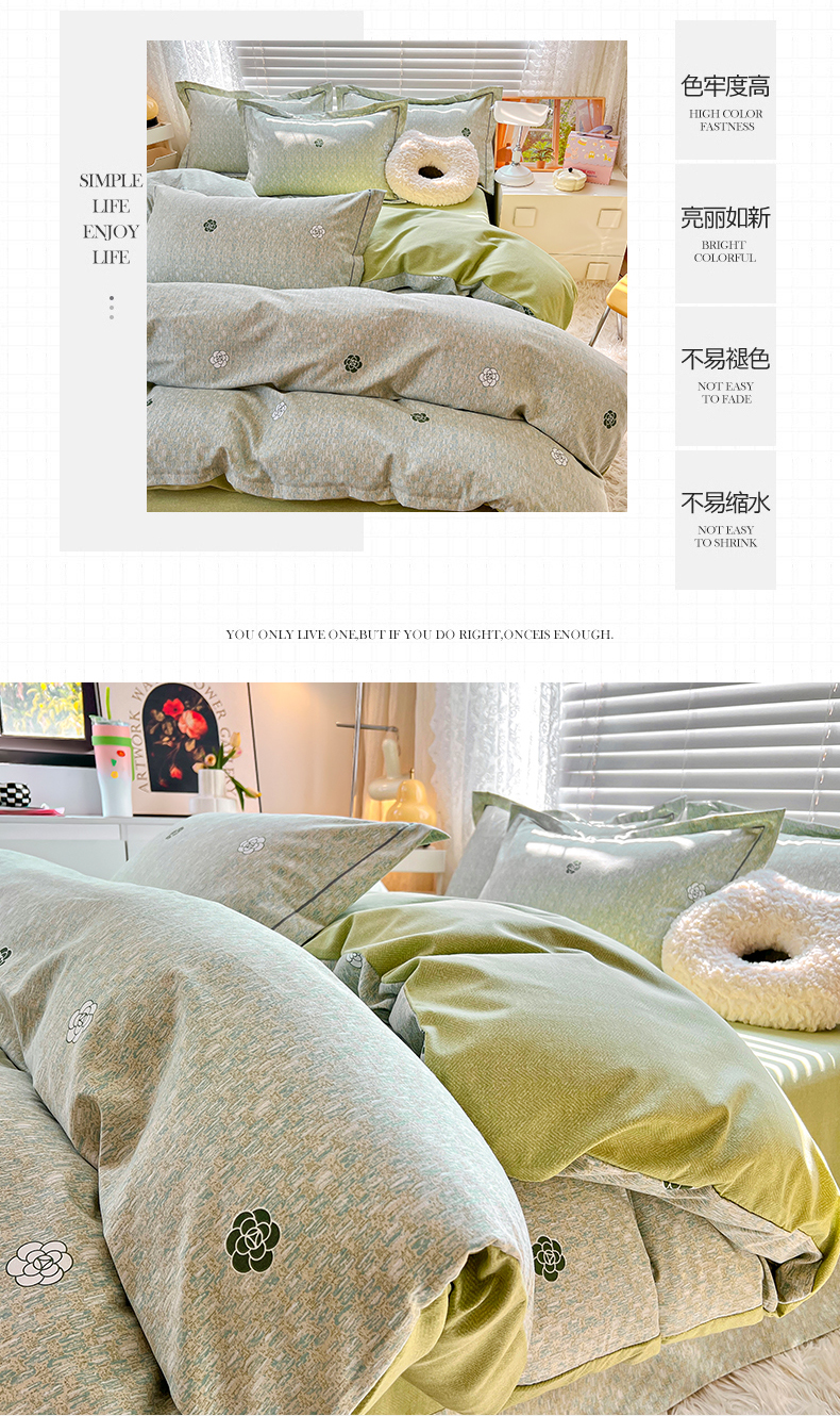 当前位置: 91家纺网 > 商品网购 > 床品套件 > 四件套 > 普通磨毛四件套 > 简约家纺 2025新款全棉磨毛四件套 山茶诗篇-绿