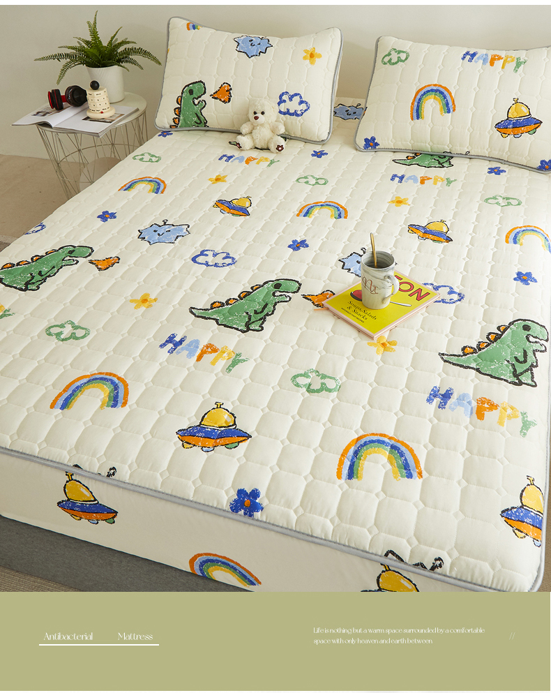富馨莱 2025新款纯棉夹棉单件床笠 恐龙派对