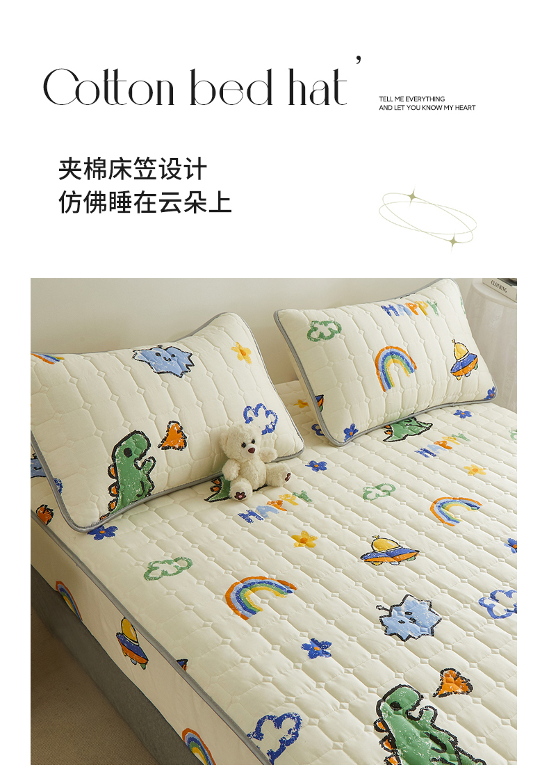 • 91家纺网 家纺一手货源 找家纺 富馨莱 2025新款纯棉夹棉单件床笠 恐龙派对